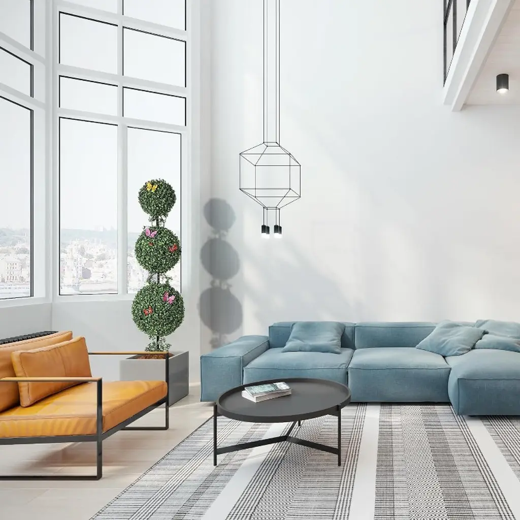 Artificial Triple Ball Topiary Trees, Artificial Plants Outdoor with Vines & Insects Decoration, Topiary Balls Trees for Home Offices Porch Decor, artificial double-ball topiary tree is made of high-quality PE material, and the leaves are treated with UV sunscreen.