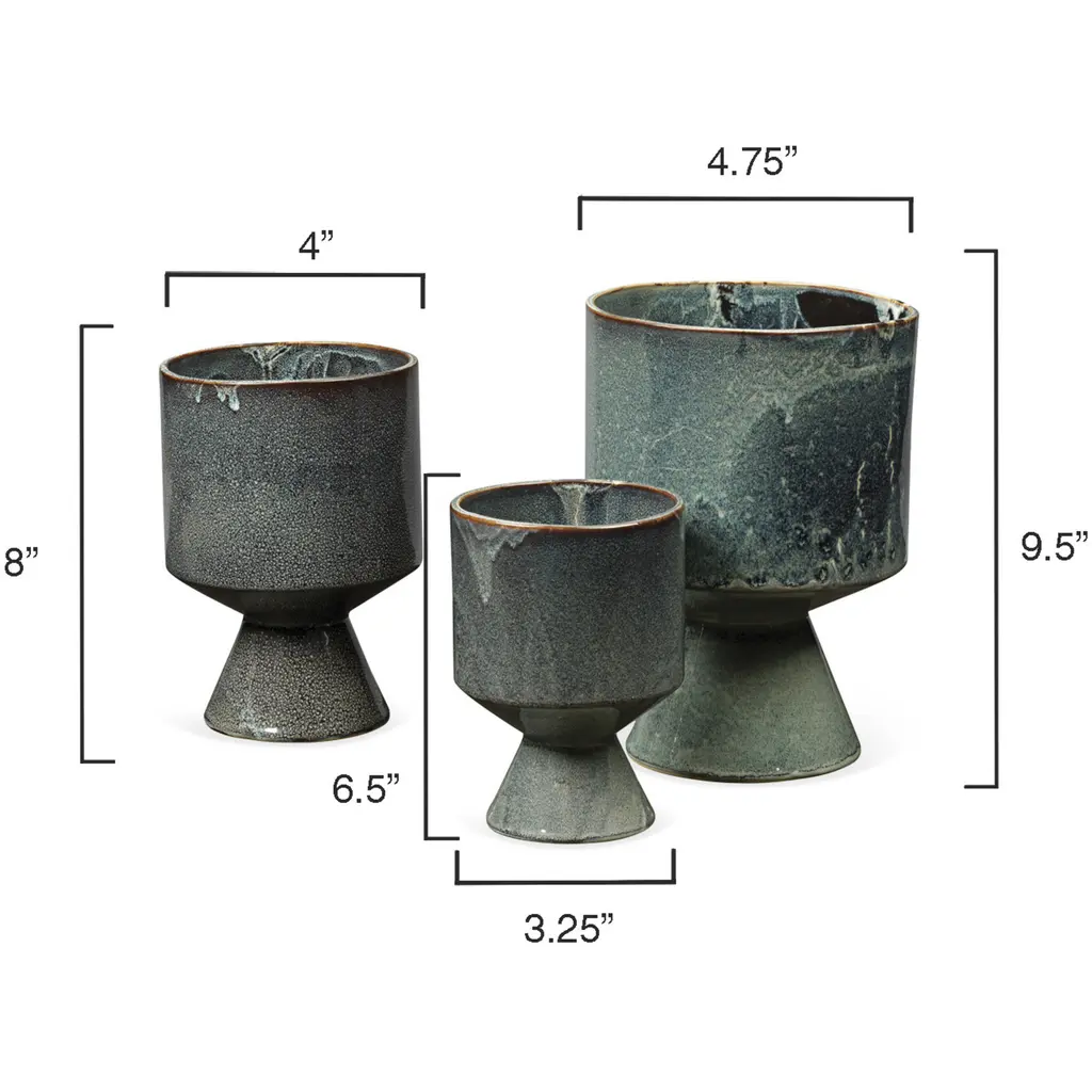 Showcase potted succulents, tropical plants, or faux botanicals with this trio of ceramic planters. Hand-glazed in a go-with-anything reactive blue finish that is unique to each pot. Shaped in assorted sizes, you can display separately or grouped together for added visual interest.
