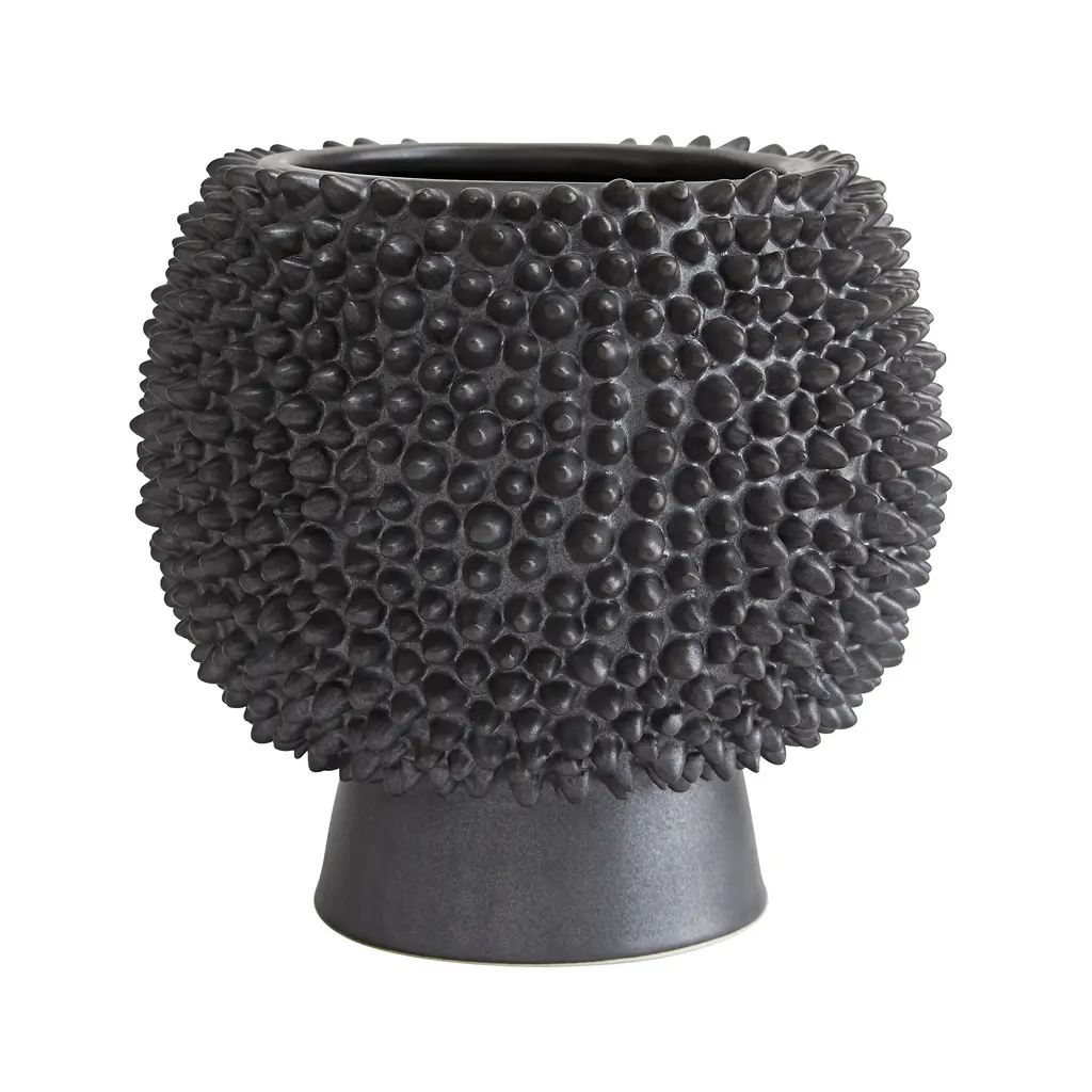 A timeless and iconic design to complement an outdoor area of modern inspiration, this cachepot is a meticulous showcase of craftsmanship. Made of ceramic, it features a striking surface textured with knots entirely lacquered in a blue-gray hue. This design will make a singular gift to showcase in a garden or patio.
