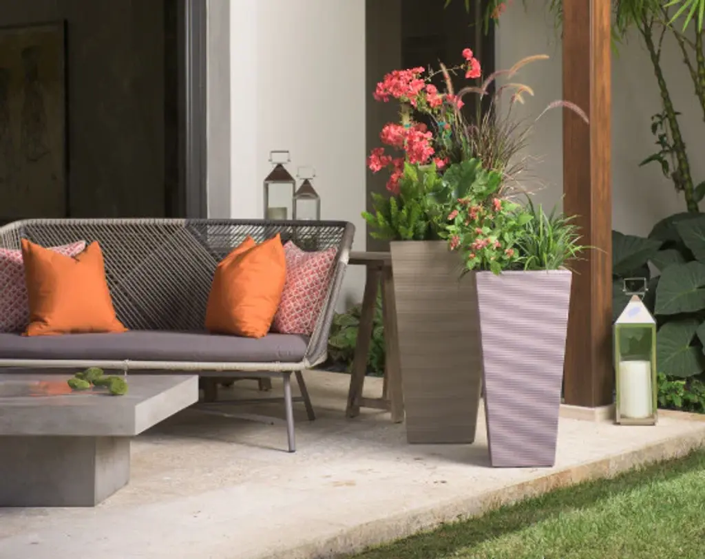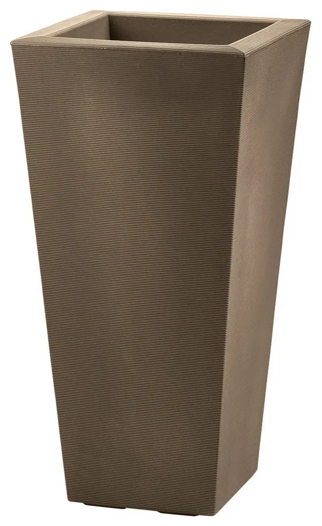 Create a sophisticated look indoors or outdoors by adding tall plants to this textured, square tapered planter. The double-wall feature insulates the roots against the changing temperatures so your plants can thrive. Add a square saucer if you''re keeping your plants indoors for a beautiful look you can enjoy year-round. The 3 different sizes provide you appealing options for grouping these weather-proof and impact-resistant planters. A highlighting feature is the in-built cavity that can be filled with sand for additional stability. Tall double-walled planter is a perfect indoor and outdoor planter. Large soil capacity allows for creating dramatic plant displays. The weather-proof structure ensures the planter won''t fade or crack during extreme temperatures. Sturdy planter shell protected by a 10-year warranty. Constructed with 100% recyclable rotation molded plastic, making it lightweight, chip-resistant and durable.Features a pre-drilled drainage hole for easy planting.In-built cavity that can be filled with sand for extra stability, a much needed feature for windy weather. Inner dimension: 10.5" W x 17.7" H ; Soil capacity: 6 gal (24 dry quarts)