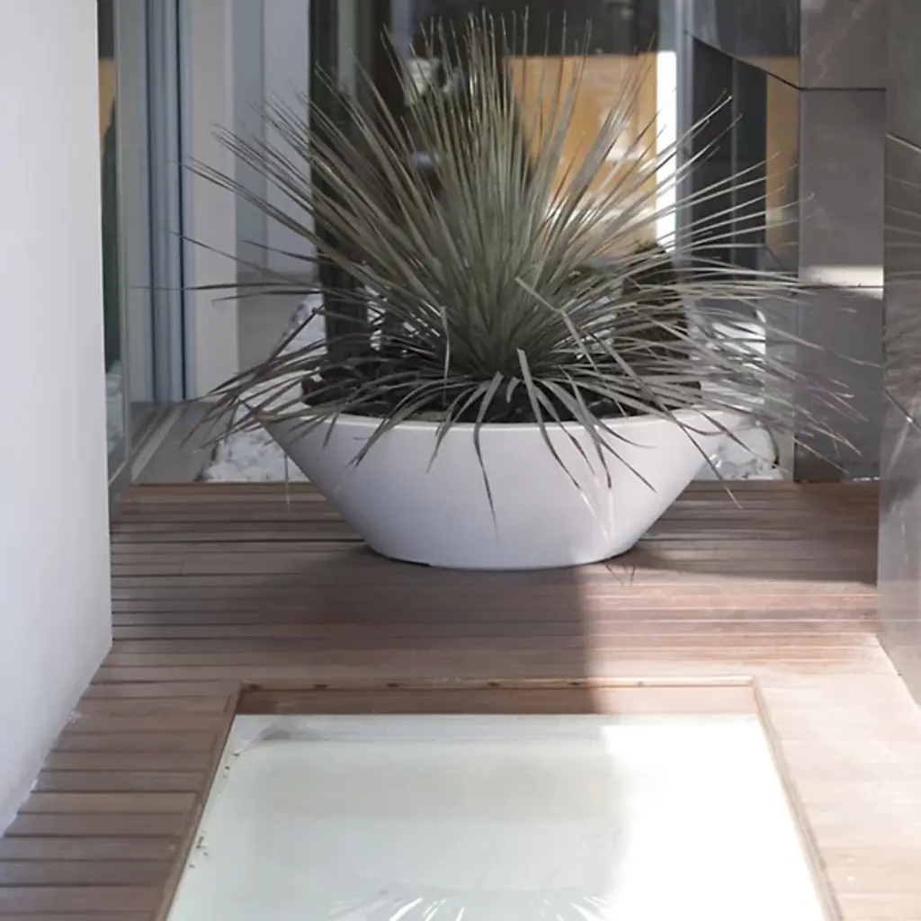 2014 Design. Made in Spain by VONDOM. Vondom's Centro Pot assumes a low girthy posture for the thicker greens of your garden. Made from 100% recyclable polyethylene, this planter is lightweight, impact-resistant and weather-resistant. The Centro's matte finish and classic design make it a perfect centerpiece for your modern home, indoors or out.