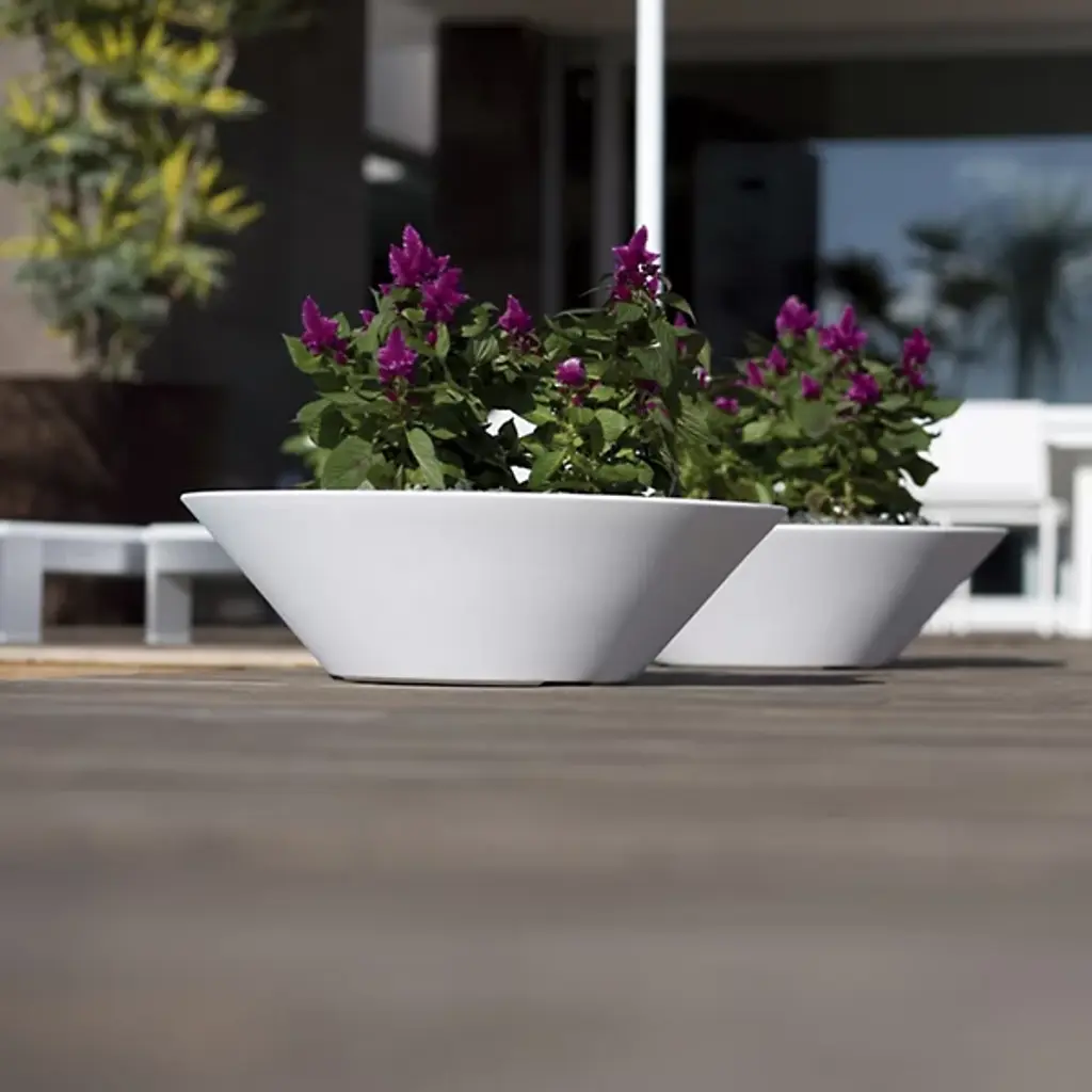 2014 Design. Made in Spain by VONDOM. Vondom's Centro Pot assumes a low girthy posture for the thicker greens of your garden. Made from 100% recyclable polyethylene, this planter is lightweight, impact-resistant and weather-resistant. The Centro's matte finish and classic design make it a perfect centerpiece for your modern home, indoors or out.
