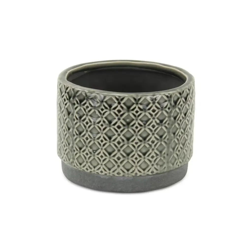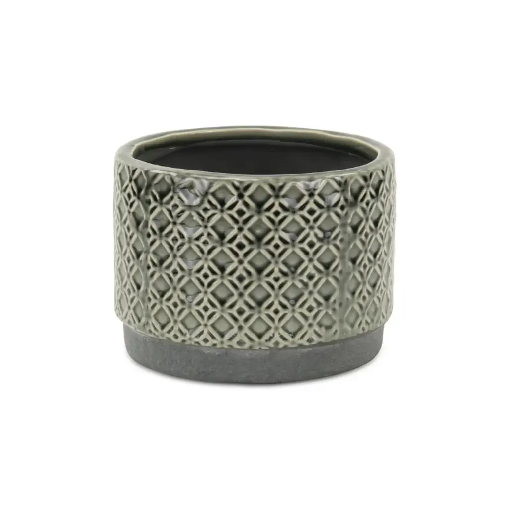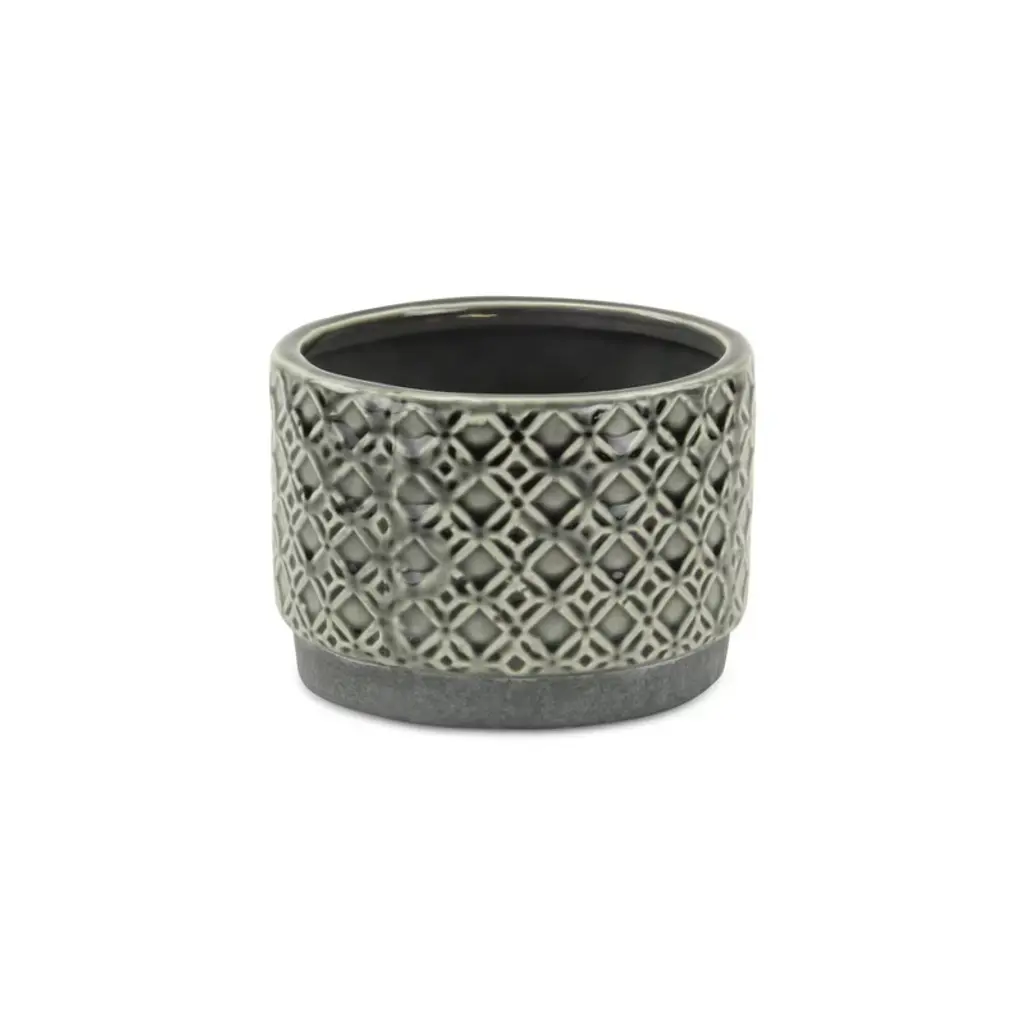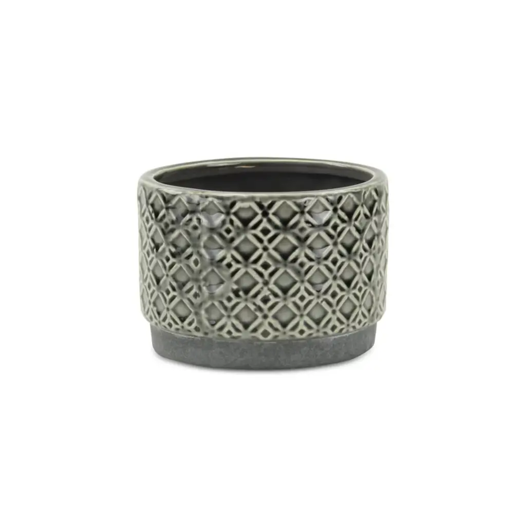 The Gray Wide Lattice Pot is an intricate, handcrafted piece. This pot has been glazed in a matte gray ceramic and features a lattice design that adds texture and visual interest to this low pot, which can be used indoors or outdoors. Crafted from high-quality ceramic, this beautiful planter is the perfect accent for any space.