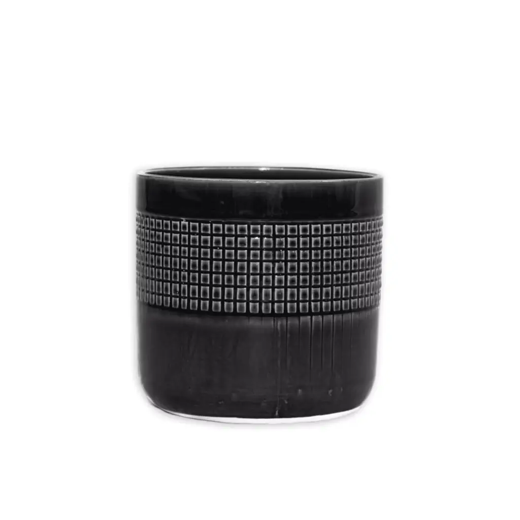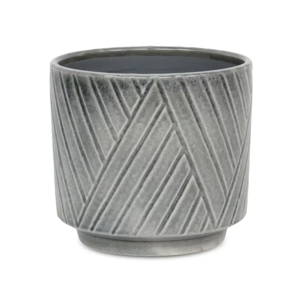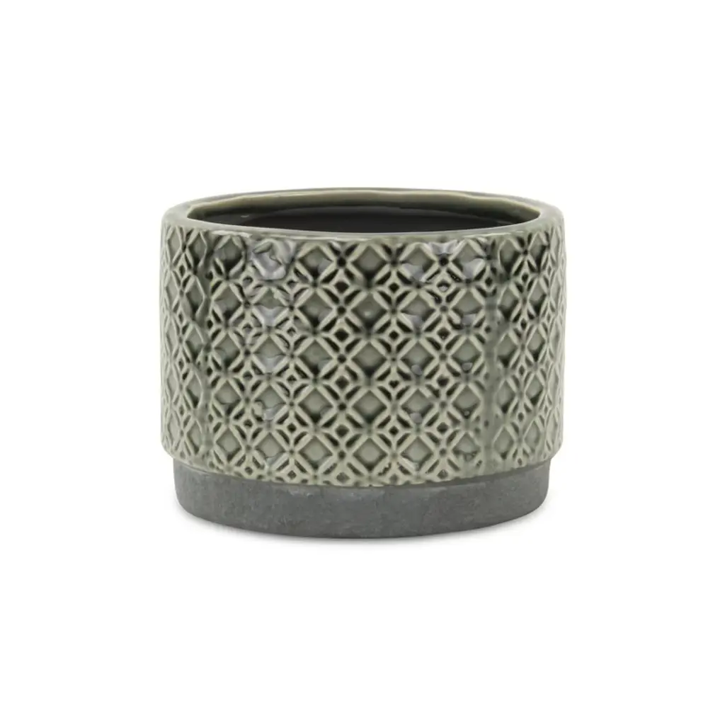 This pot is truly one-of-a-kind! The entire piece is handcrafted and completely handmade. Ready for use, with no assembly required. With a gray glaze and an intricate lattice design, this pot works best inside any space, or out on the patio on a summer day. Use it as an accent piece for anywhere, or to hold your favorite real or artificial house plants.