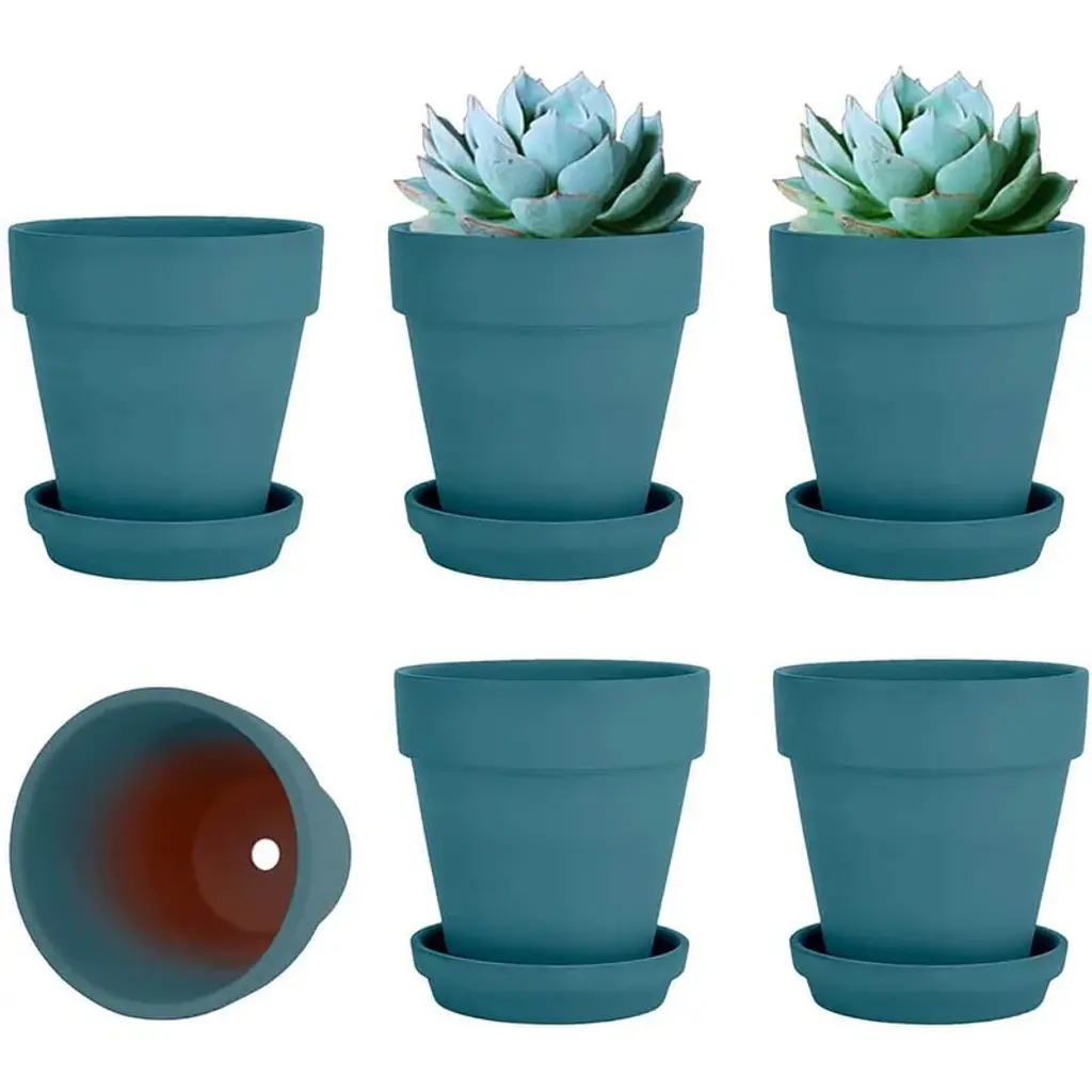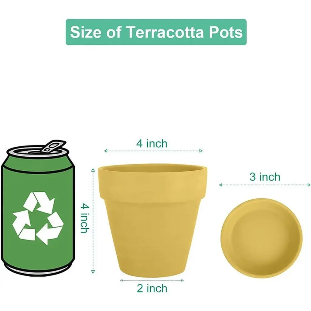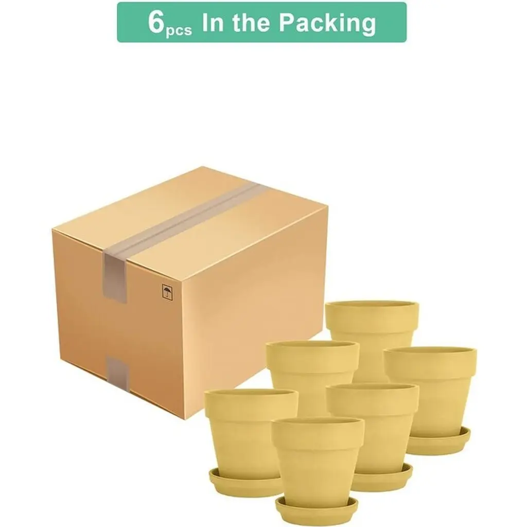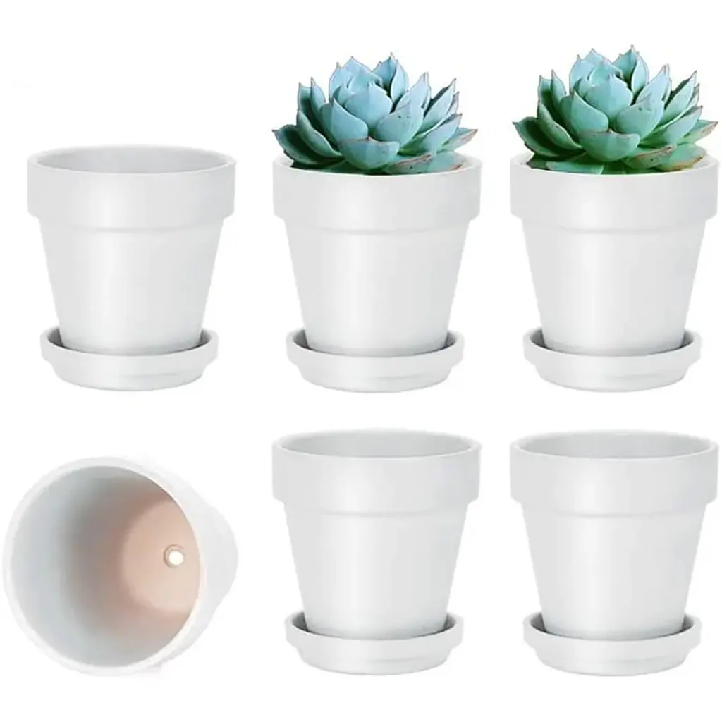 Premium Quality:The black clay pot made of top-quality clay and baked at 1796°F high temperature, each Terracotta Pots with black paint features great durability. All packages have passed the 3-foot drop test to ensure the pots stay intact during delivery. Small and Exquisite:The white clay pots for plants, 4 inches in height, 4 inches in outer diameter, are designed for holding indoor or outdoor plant and succulent, cactus and herbs. There are 6 pcs pots in the package, plants and soil are not included. Drainage Holes and Saucer:Each terra cotta with black paint comes with a small drainage hole at the bottom, increasing drainage efficiency when watering, protecting the health of your plant. And the saucer can keep your indoor or outdoor clean. Great Choice for Watering Enthusiast:Permeable of terracotta pot keep your plants breathable. If you like very much watering for plant, you don't worry about too much water. Multi-usages:The terra cotta pots are perfect for small & middle plant, ornament for room or balcony, patio and garden decoration, crafts creation and more. Suitable for indoor or outdoor usage.