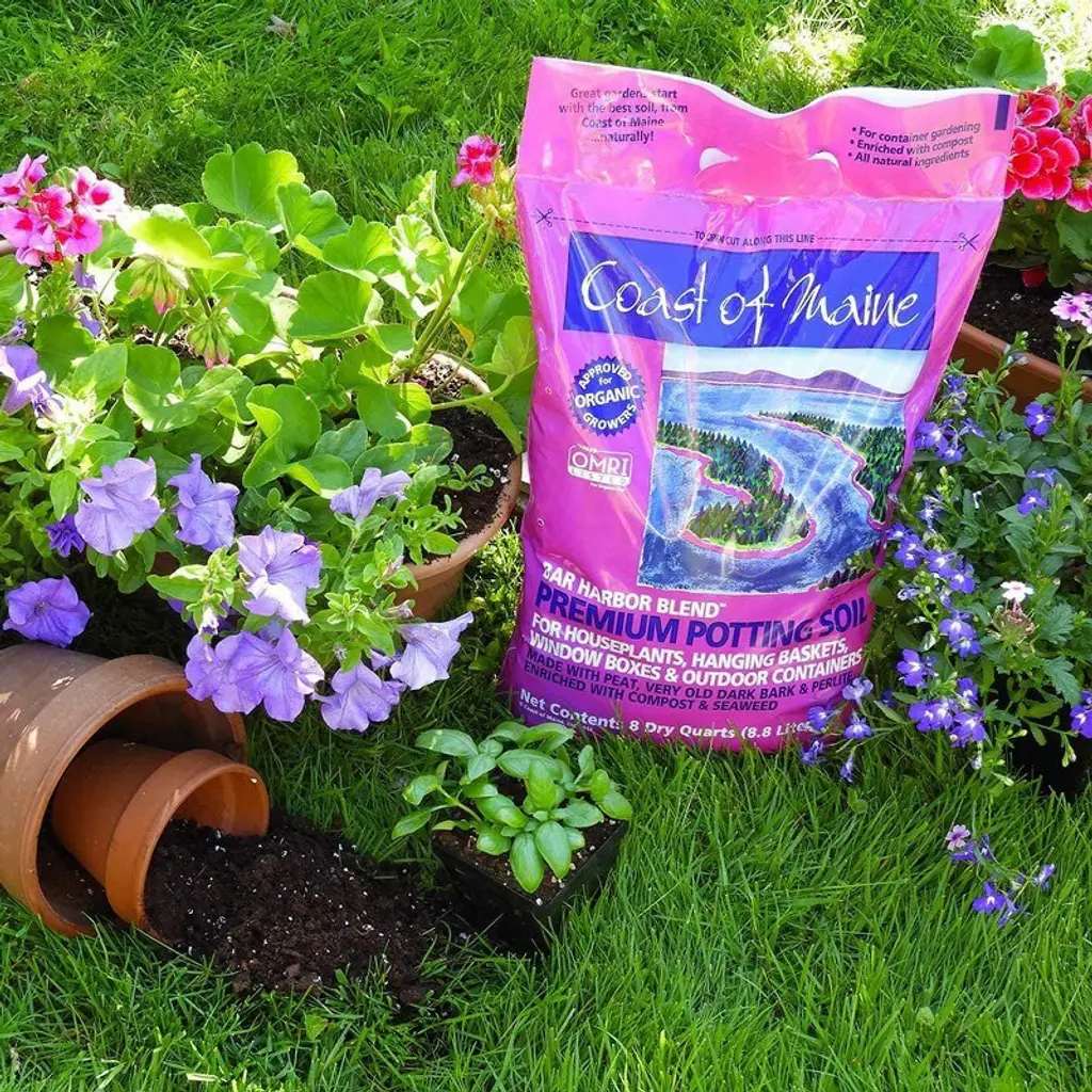 Coast Of Maine Bar Harbor Blend Organic Potting Soil For Container Gardens And Flower Pots, 8Qt