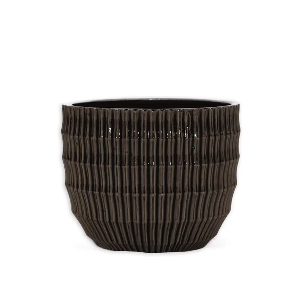 This ceramic planter pot features a coiled design and glossy finish, bringing a clean, sculptural finish to your greenery. Style it with a leafy plant or sculptural succulent to add a fresh touch to any shelf, tabletop, or windowsill.