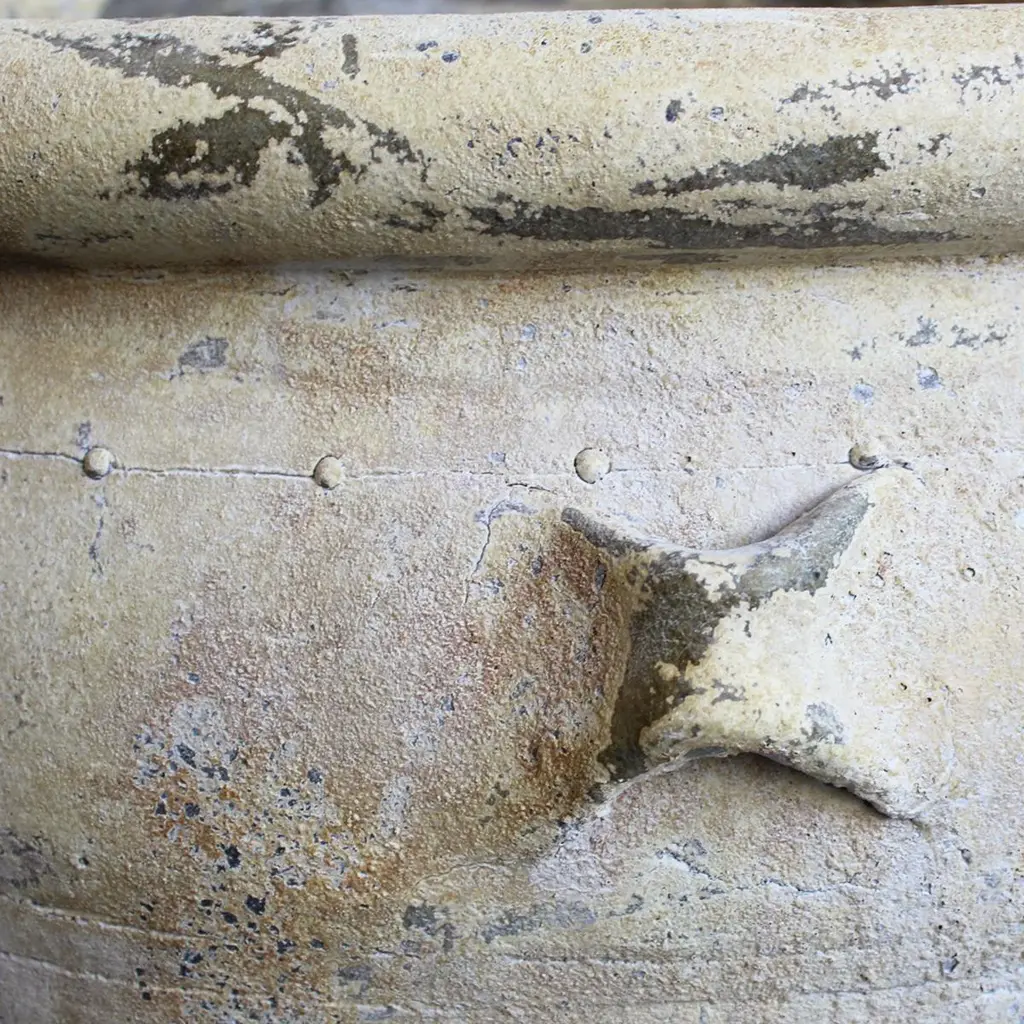 Handmade earthenware clay pots fired in the traditional ancient underground scorpion stoves. This old-world technique uses wood fired kilns instead of gas. This original style of preparing this Thai pottery gives a beautiful yellow green finish that varies from piece to piece. Many shapes and sizes are available crated and imported for use as indoor or outdoor planters and decorative garden elements. Sizes may vary.