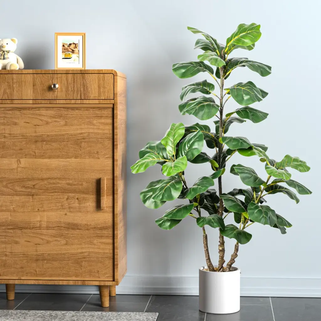 Looking to add some greenery to your home or office without the trouble of caring for a real plant? Our faux fiddle leaf fig tree is the perfect solution! With its wide, richly-colored leaves and maintenance-free durability, this faux plant is a versatile accent that will bring a touch of tropics to any space. Whether you want to add a verdant look to your bedroom, living room, or office entrance, our potted artificial plant indoors is sure to add a pop of color. Bring the soothing beauty of nature into your home or office with our easy-care artificial fiddle leaf fig tree!