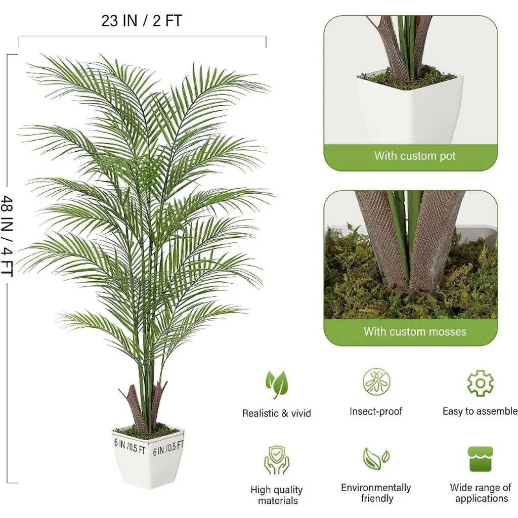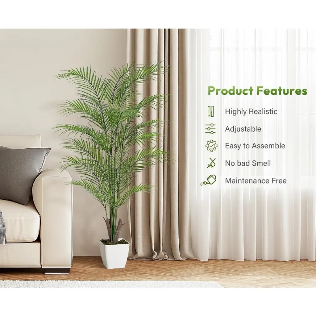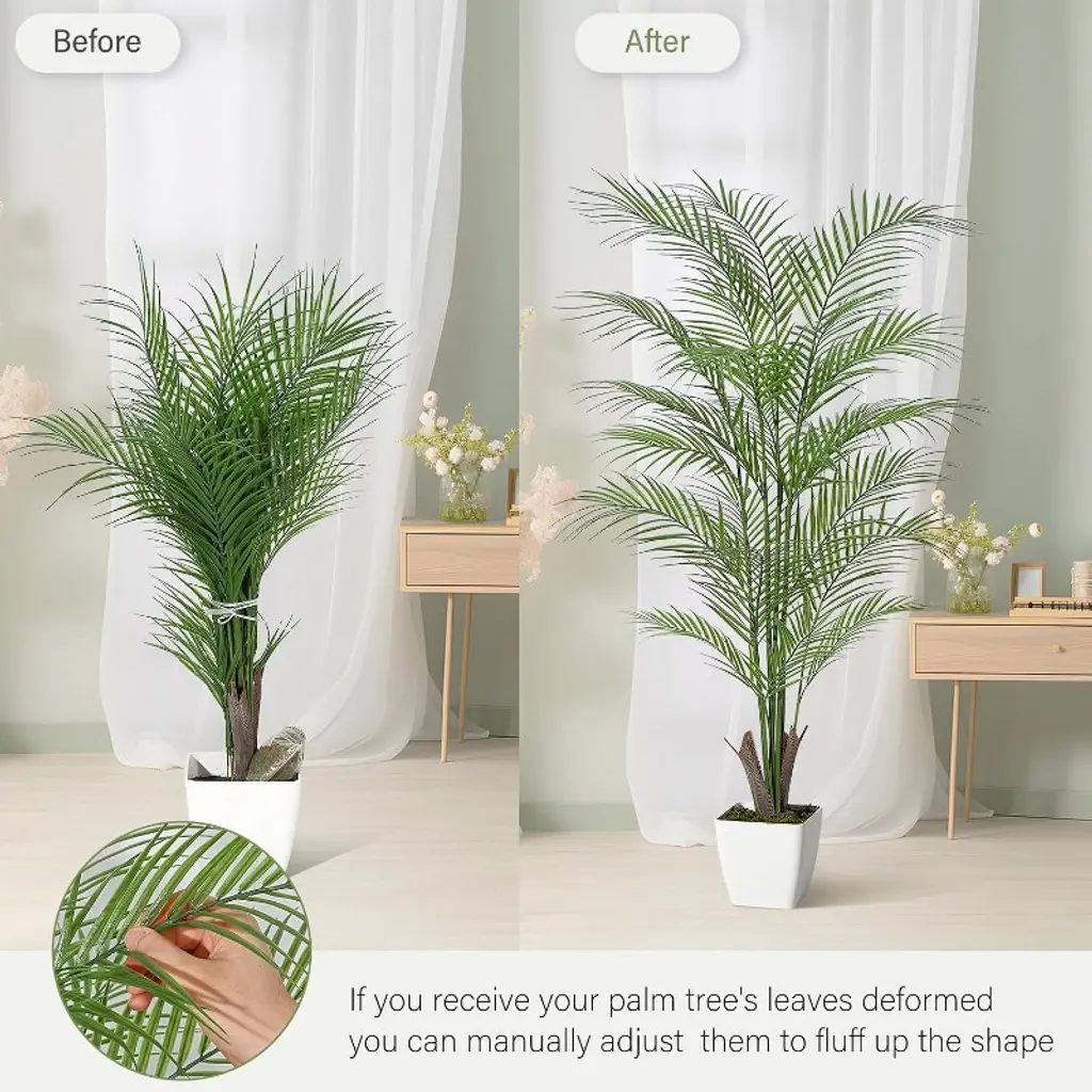 【Bring Nature Indoors】Elevate your space with our 4/5/6FT Artificial Palm Tree, featuring three realistic trunks and lifelike palm leaves. Crafted with intricate detailing, this faux palm plant mimics the beauty of a real palm tree, adding a touch of tropical elegance to your home, office, or shop. Feel the calming presence of nature every day, no matter where you place it. 【Premium & Durable Design】Made from high-quality, real-touch materials, this artificial palm tree is waterproof, eco-friendly, and built to last. The sturdy cement base ensures stability, preventing it from tipping over, even around children or pets. Adjust the leaves to your desired shape for a perfectly tailored look that suits your space. 【Zero Maintenance, Always Fresh】Say goodbye to the hassle of watering, fertilizing, or worrying about sunlight. This maintenance-free palm tree stays lush and vibrant year-round. If it gets dusty, simply wipe it clean with a damp cloth or duster. Enjoy the beauty of greenery without the stress of keeping it alive! 【Versatile Décor for Any Space】Whether you’re decorating your living room, balcony, terrace, or office, this palm tree adds a modern, green vibe to any setting. Its flexible design allows it to blend seamlessly with your existing décor, creating a stylish and refreshing atmosphere. Pair it with faux moss or other plants for a complete look. 【Perfect Size for Every Corner】Available in 4FT, 5FT, and 6FT heights, this artificial palm tree is designed to fit perfectly in any space. Whether you need a statement piece for a large room or a subtle accent for a cozy corner, we’ve got you covered. Plus, our dedicated customer service team is always ready to assist you with any questions or concerns.