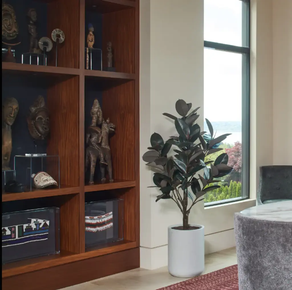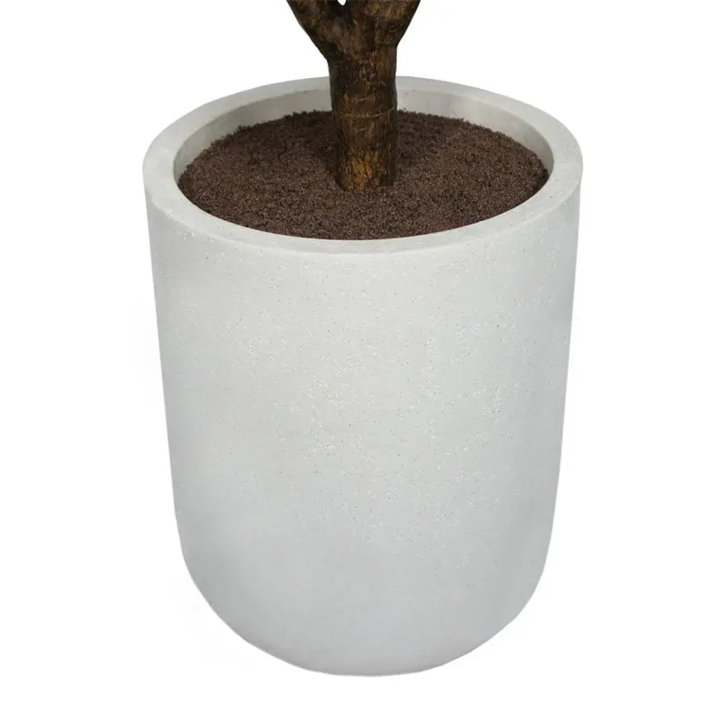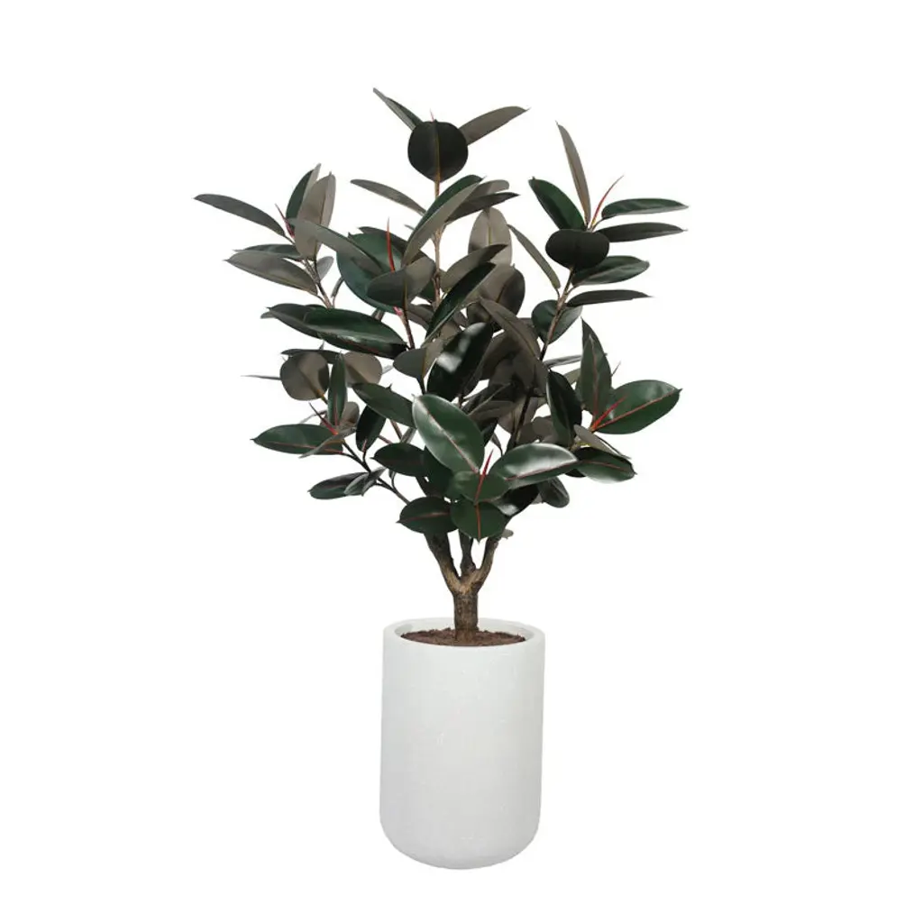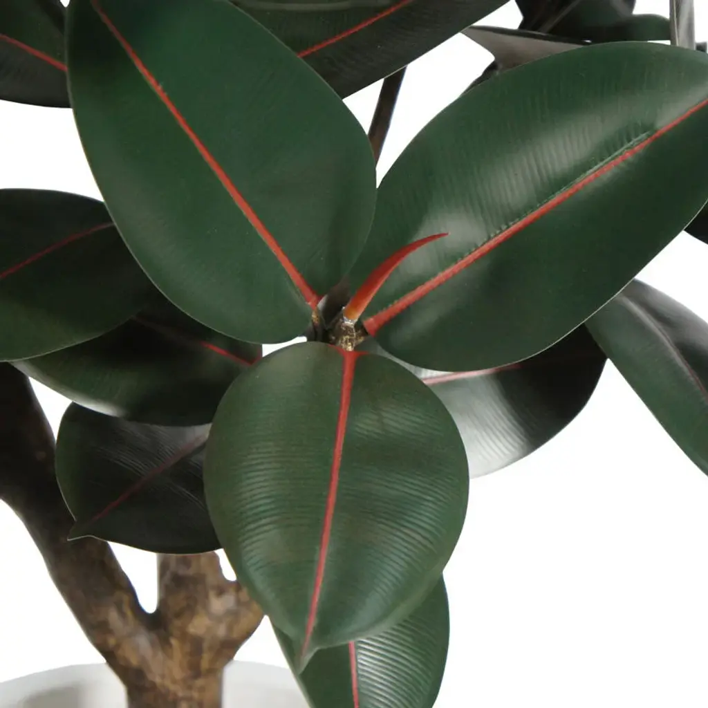 Enhance your indoor spaces with the Faux 5' Rubber Ficus Tree, stylishly presented in a modern gray planter. This artificial plant features meticulously hand-painted trunks and lifelike leaves, creating an impressively lifelike appearance that adds a touch of natural elegance to any setting.