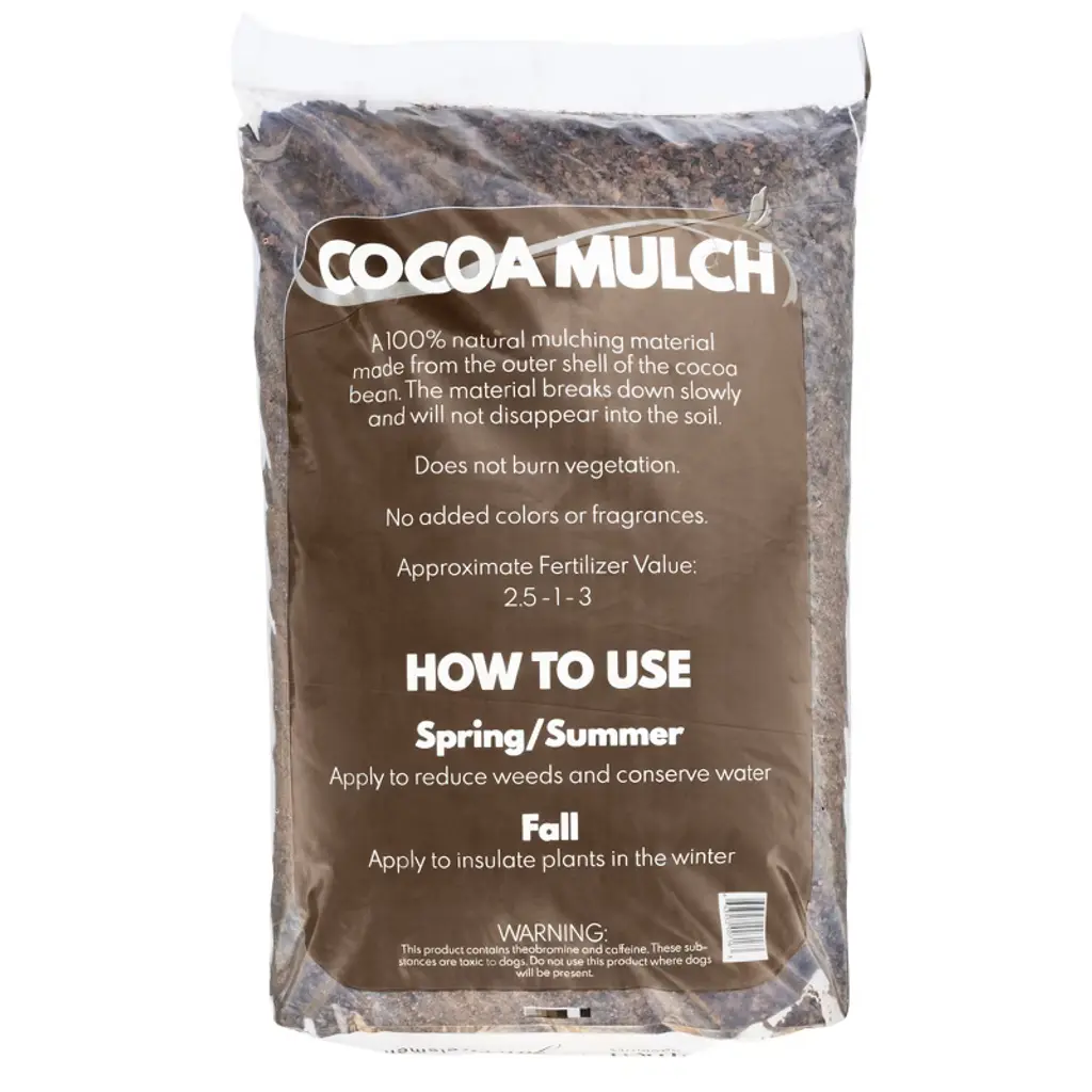 If you like the smell of chocolate, you’re going to love this sweet-smelling Garden Elements Cocoa Mulch! A 100% natural mulching material made from the outer shell of the cocoa bean. No added colors or fragrances, that chocolatey smell is all natural! The materal breaks down slowly and will not disappear into the soil. Use in the spring to reduce weeds and conserve water by retaining the soil moisture. Apply in the fall to insulate plants from the cold temperatures. Approximate fertilizer value 2.5-1-3. Produced in the USA!