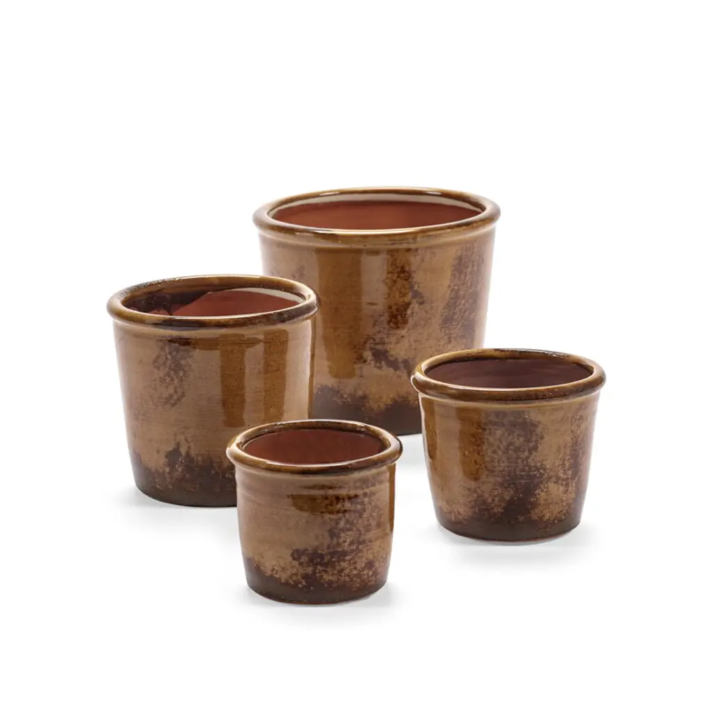 The Glazed Shades plant pots by Serax offer an easy way to add a unique touch to your home décor. The textured pots are finished with a glossy glaze that gives them their distinctive expression, making them the perfect boho-chic pots for all houseplants and flowers. By combining pots in different colors you can create your own mini urban jungle either inside your home or on the patio or balcony, although you should not leave them outside in the rain or cold weather. As there is no drainage hole in the bottom, plants should not be planted directly in the pots – you can place a plastic pot and saucer inside them or use a plastic bag.