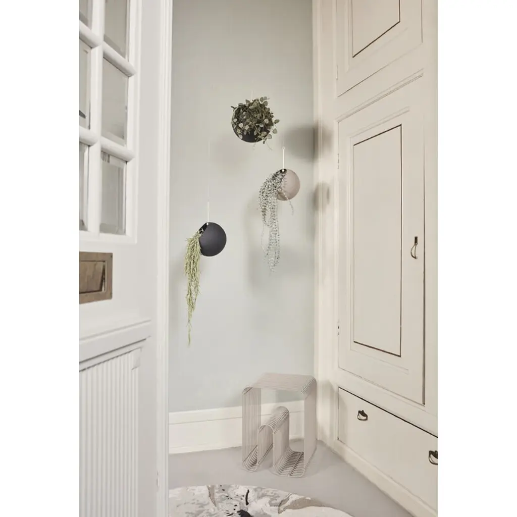 The Globe from the Danish brand AYTM is a hanging flower pot, made of powder-coated iron. The hanging pot is perfect for houseplants, flowers and herbs, and you can also use it for storing small items. The round pot is easy to attach to the ceiling at the desired height with a gold-tone steel chain. When hanging the Globe, try using clear hanging wire to create the illusion of a gravity-defying flower vase, flowing in the air on its own. The Globe flowerpot comes in several sizes and tones, so you can also combine several pots together to create a captivating, floating cluster of plants.