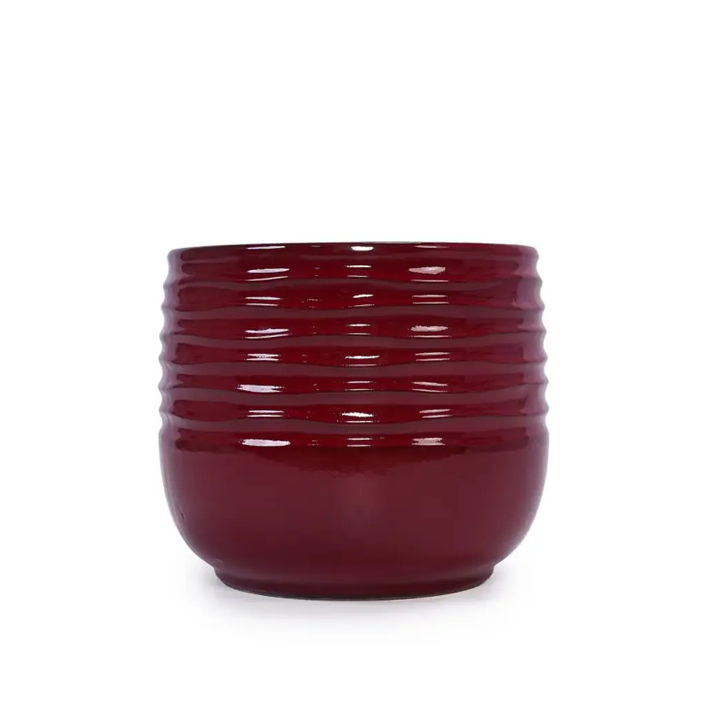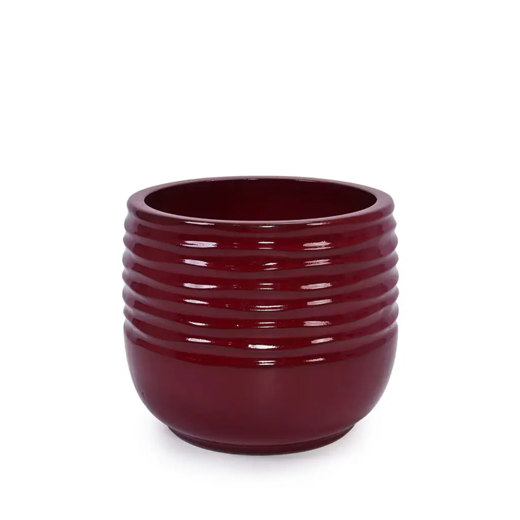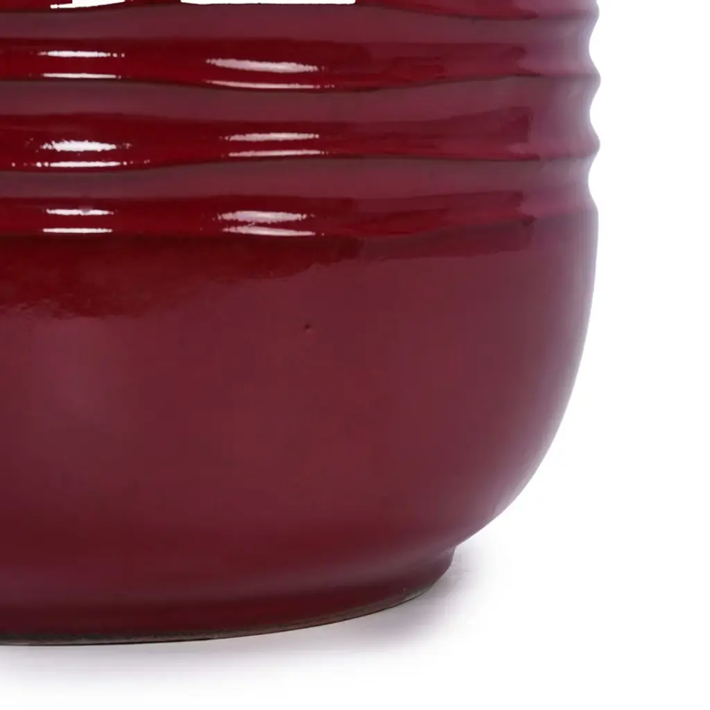 Gulches Ceramic Flowerpot With Glossy Bean Paste Red Finish Modern Pattern, All Weather Durability, 14.60"x14.60"x12.10"h