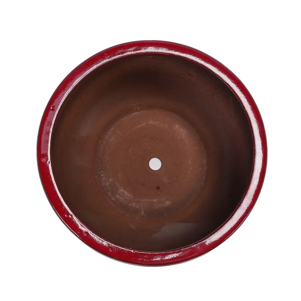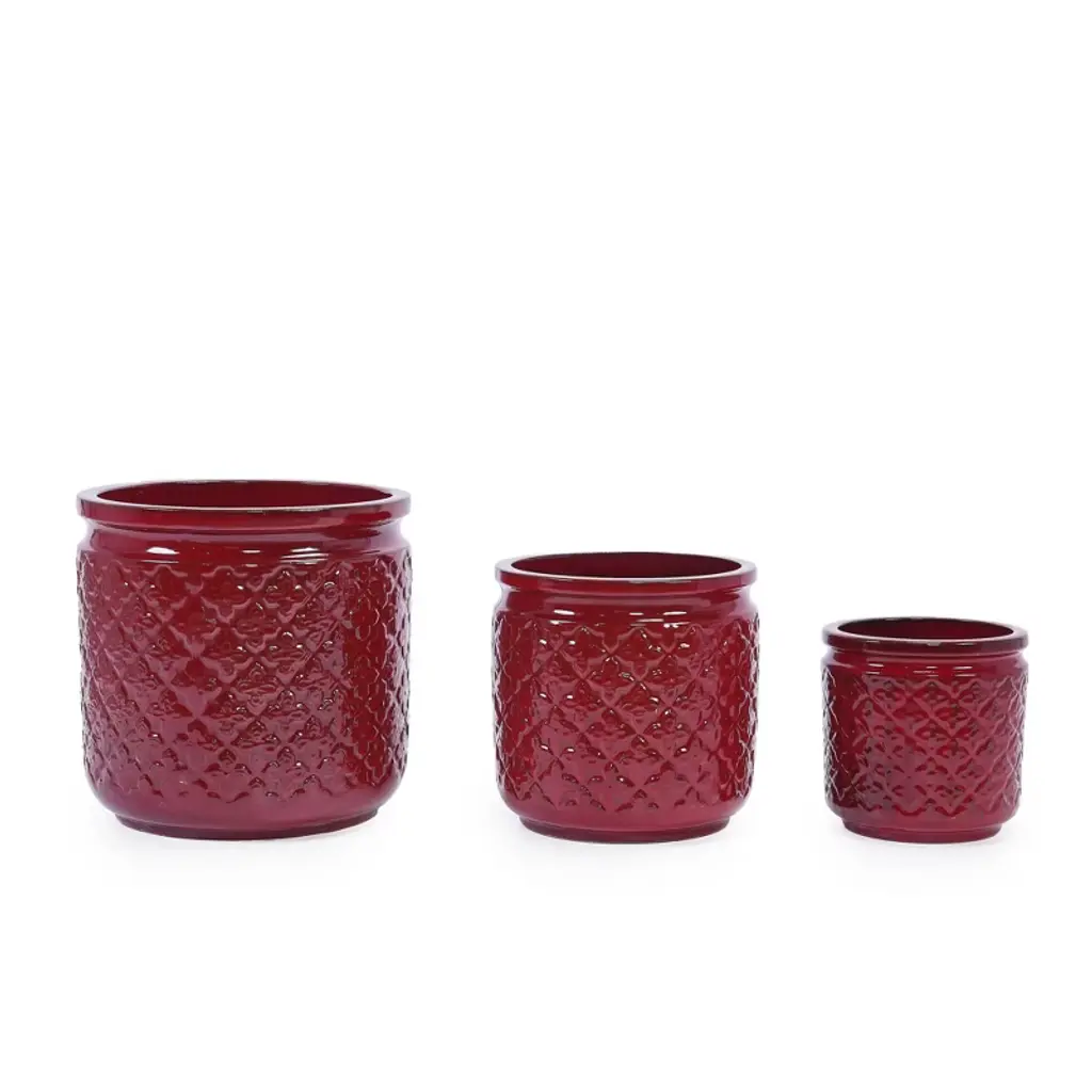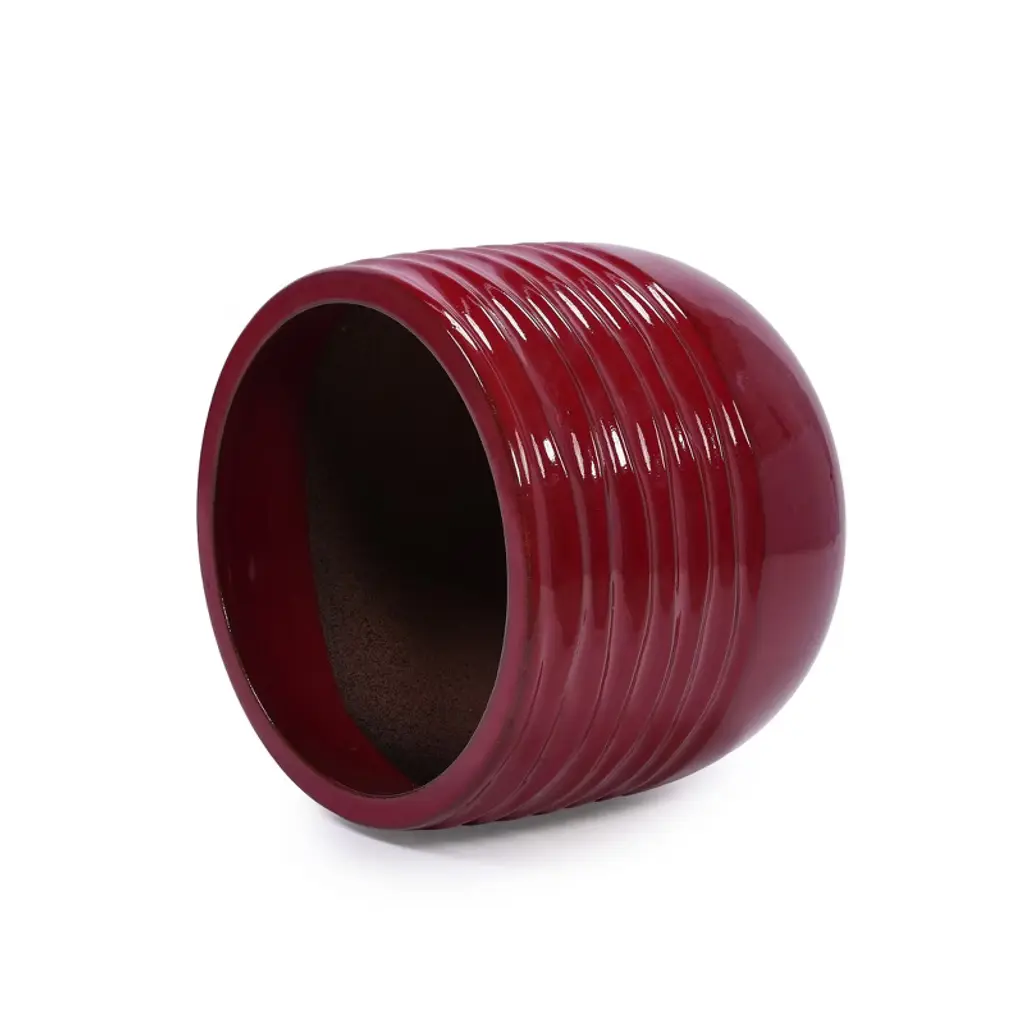 Gulches Ceramic Flowerpot With Glossy Bean Paste Red Finish Modern Pattern, All Weather Durability, 14.60"x14.60"x12.10"h