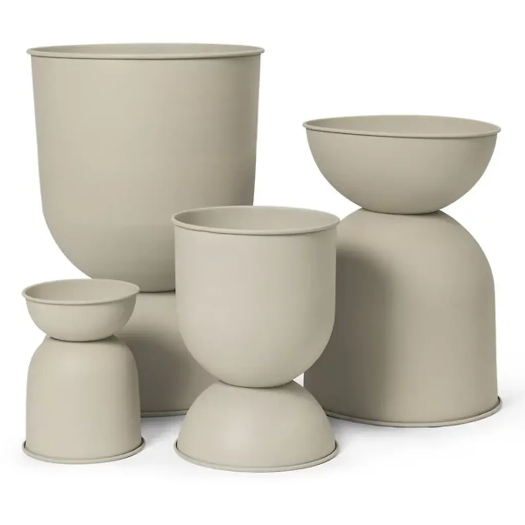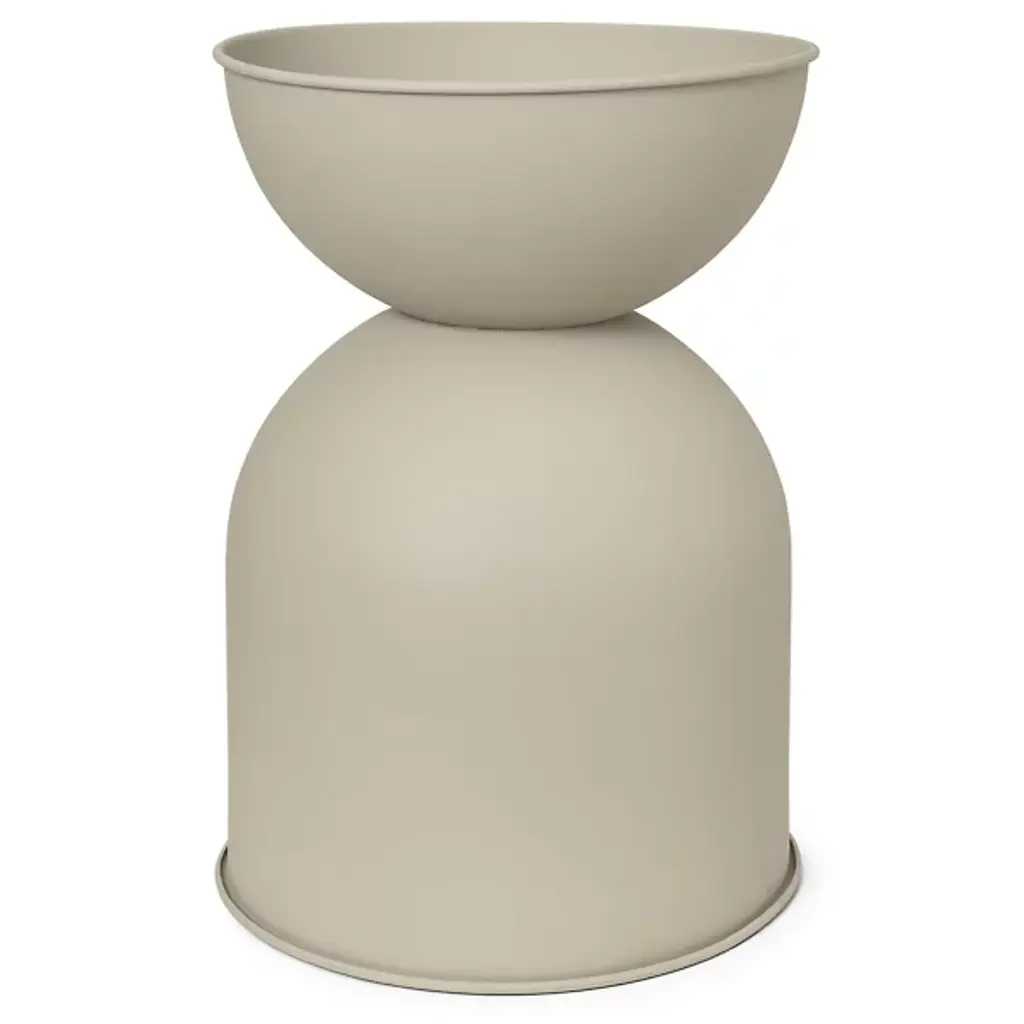 The Hourglass Pot from Ferm LIVING raises plants to new heights with its smooth, curving design. Fashioned from powder-coated metal featuring a matte finish, the hourglass shape is perfect for adding depth to compact spaces. At the same time, its durable construction ensures it can withstand outdoor elements, making it suitable for terraces or balconies. The pot can be used upside down and equipped with a drainage hole with a rubber cap for both directions. It matches functionality with a direct contemporary style, develops a beautiful patina over time when used outdoors, and adds individuality to its allure.