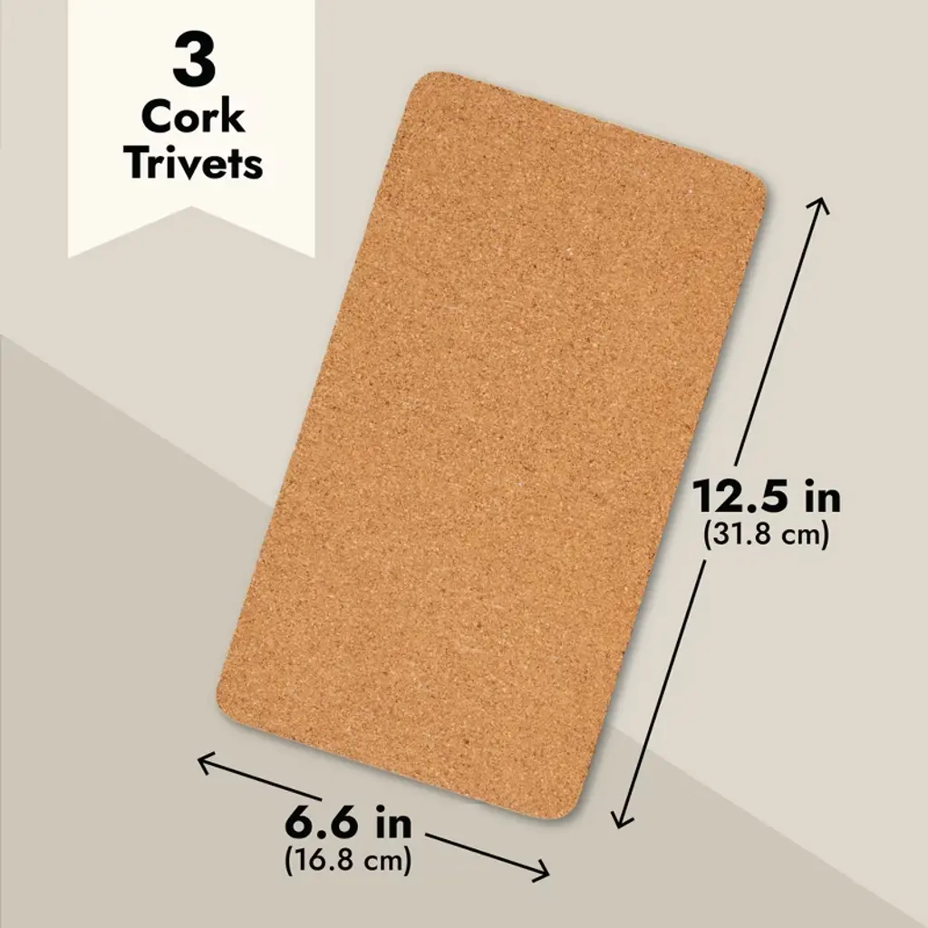 Juvale 3 Pack Rectangle Cork Trivets For Hot Dishes - Cork Placemats, Pads For Kitchen Counter, Pots, Table (12.5x6.6 In)