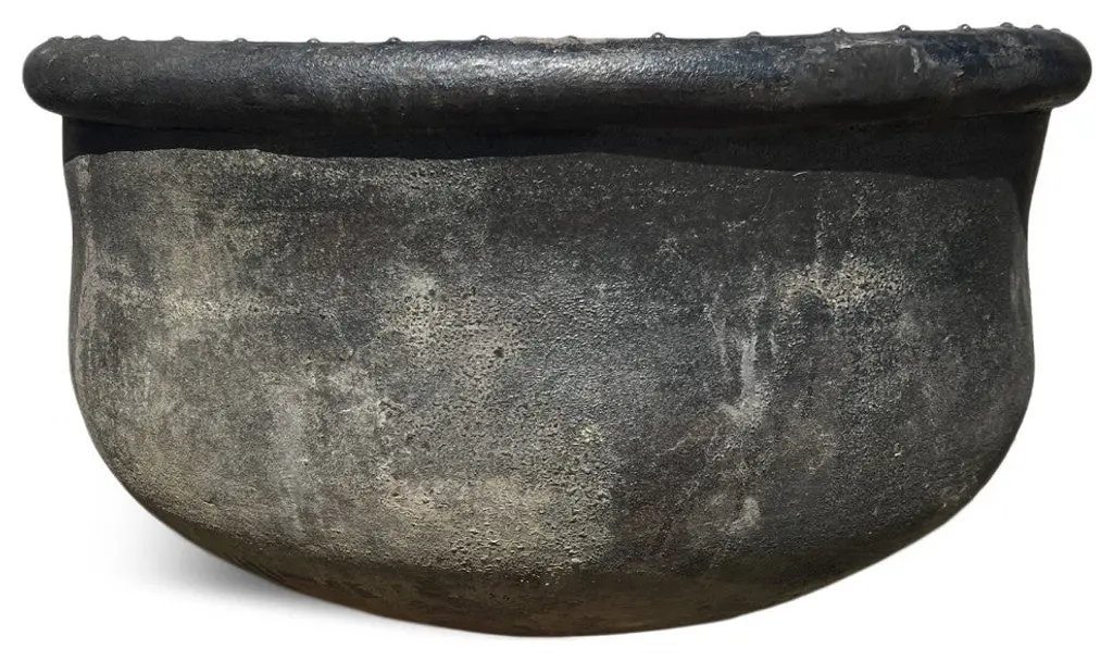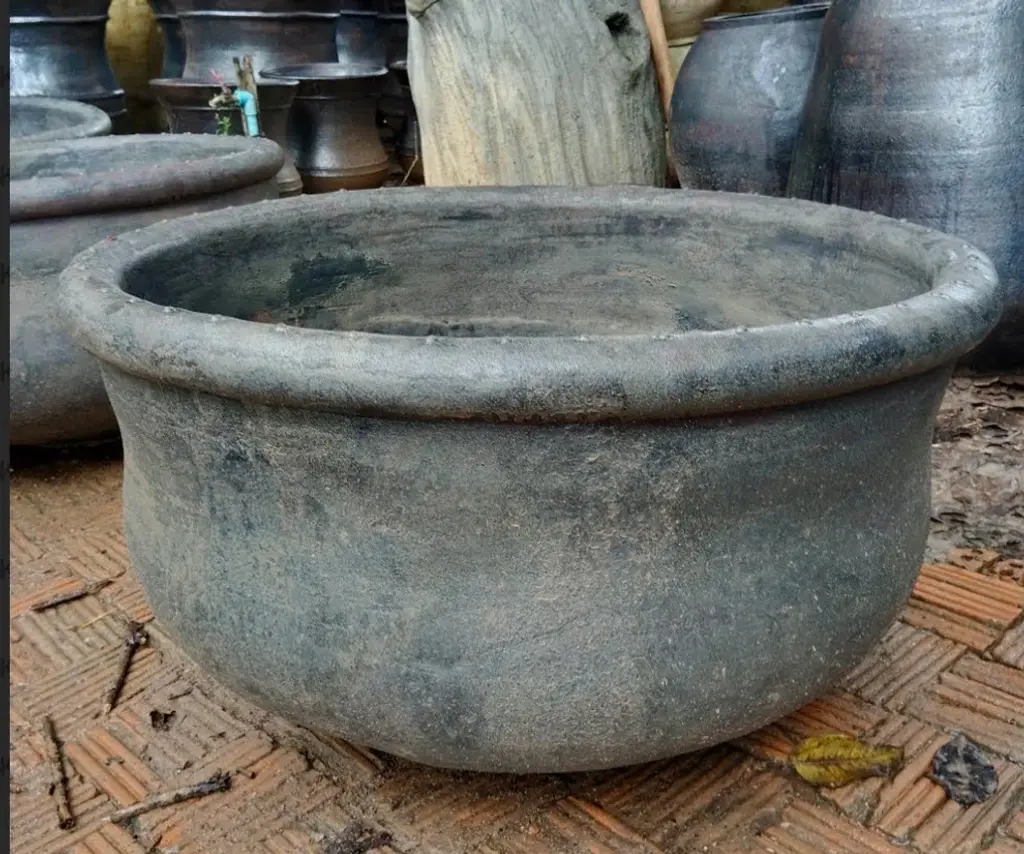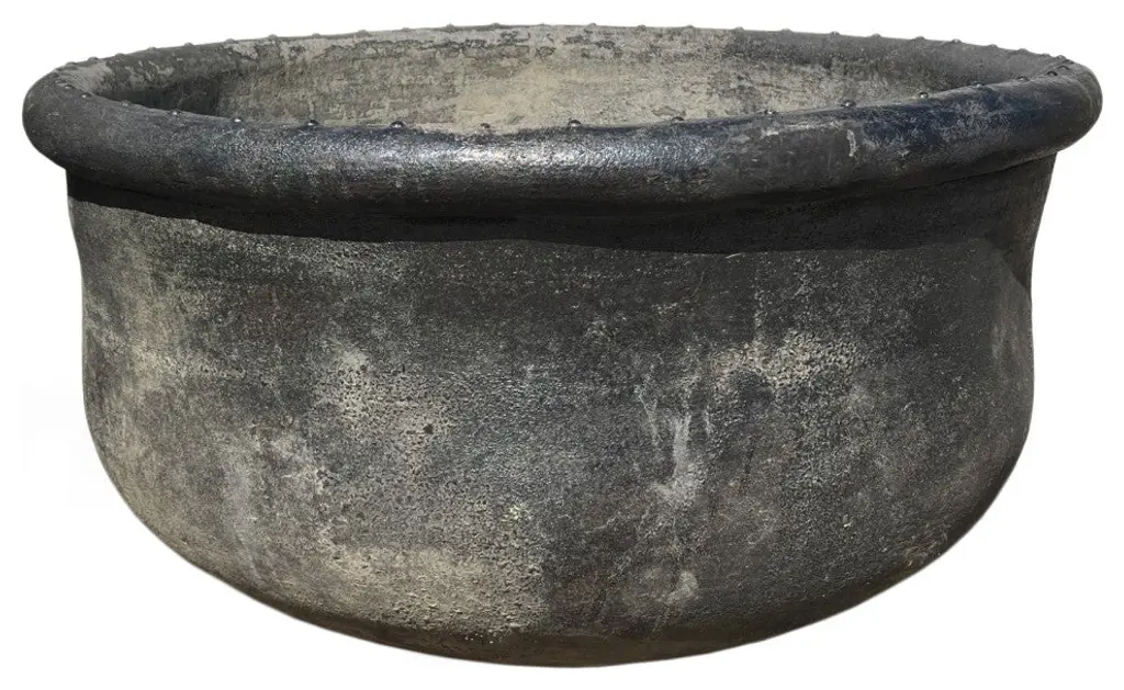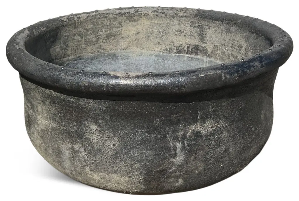 Beautiful handcrafted earthware clay pottery. Old world technique fired in underground kilns. Each piece with attractive unique faded black charcoal surface with variations in texture patterns. For use indoors or used in the garden as planters, water features and focal points of interest.