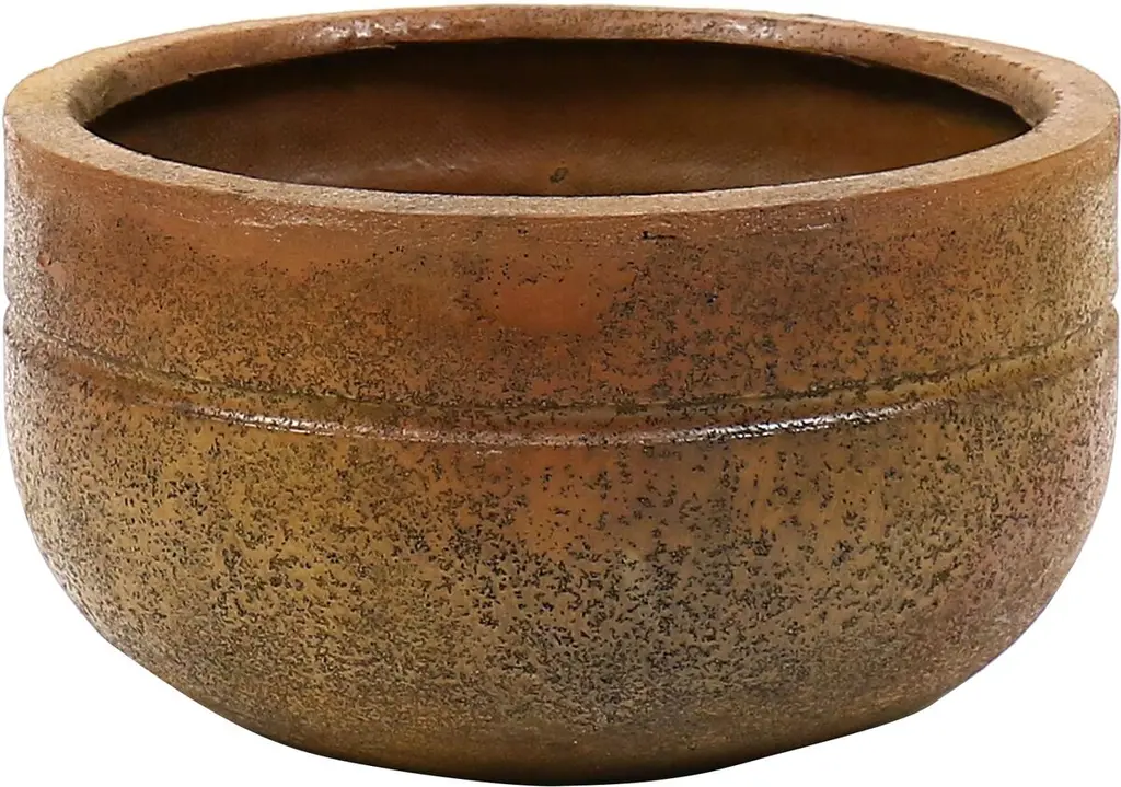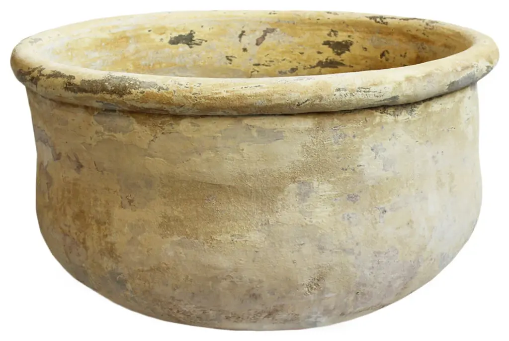 Beautiful handcrafted earthware clay pottery. Old world technique fired in underground kilns. Each piece with attractive unique faded yellow green matte surface with variations in texture patterns. For use indoors or used in the garden as planters, water features and focal points of interest.