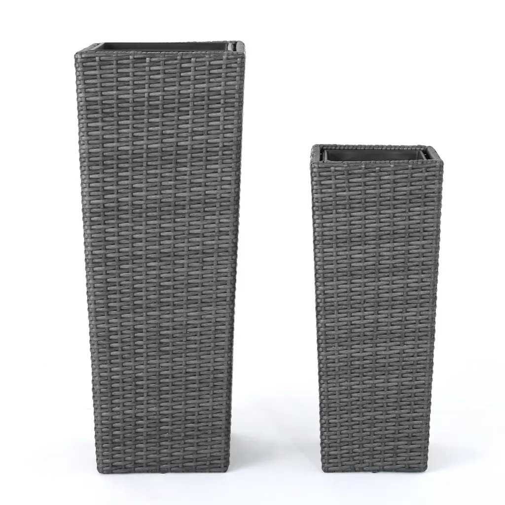 Maliang 2 Wicker Rattan Flower Pots, Gray