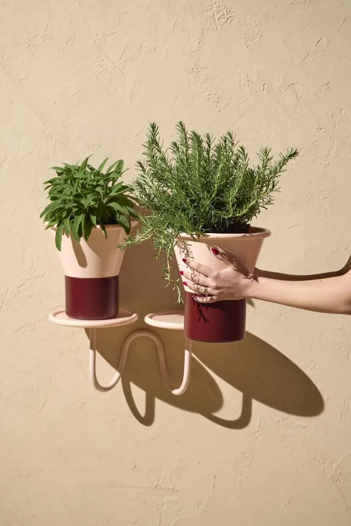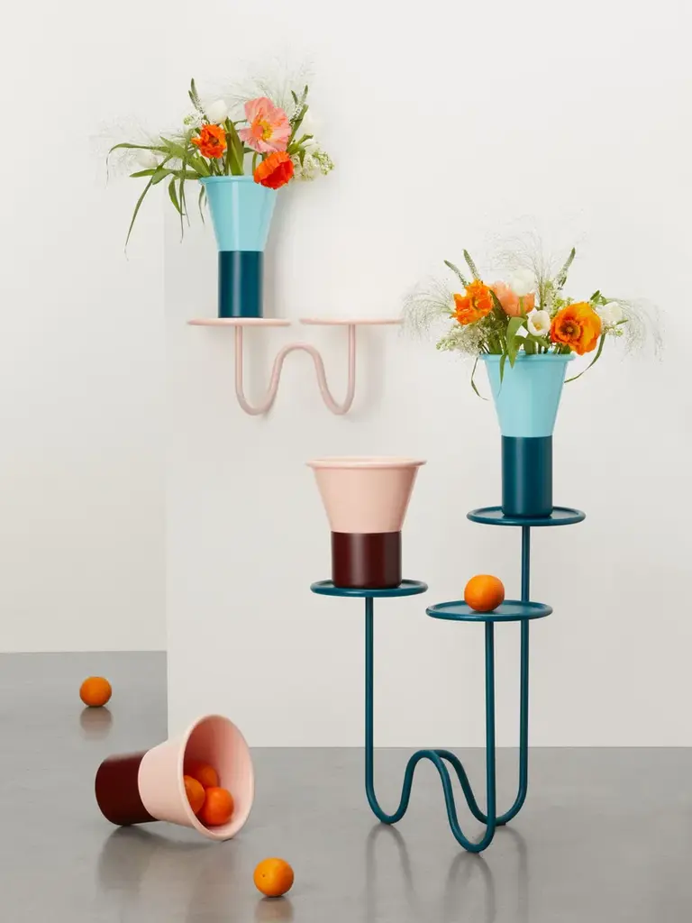 The Mimosa family of accessories is designed to showcase vegetation within our living spaces. As if suspended in levitation, these rounded supports welcome floral compositions or ornamental plants, while the sinuous tube connecting the trays evokes the idea of a root or rhizome with a line. Lively and colourful, these plant holders can be placed in a corner, against a wall, or wall-mounted, infusing softness and a sense of coziness into any environment.From the practical need to have complements for the outdoor microcosm of the S-CAB world, come the plant holders and planters (also complementary to each other) suitable for both contract solutions and the intimate space of a house’s terrace. A measured, minimalist object that lends itself to any style.