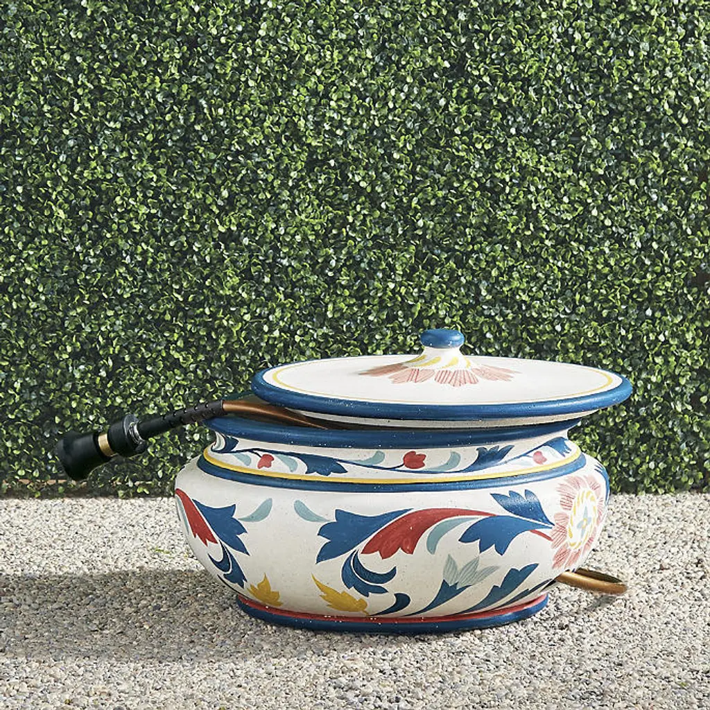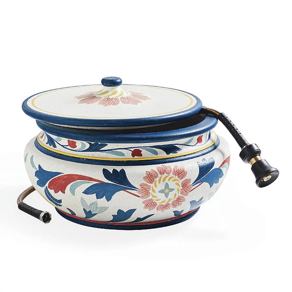 Beautifully handpainted with a colorful floral pattern. Crafted of a faux stone composite, our colorful Miray Hose Pot is a stylish way to store up to 100 feet of garden hose. Crafted of a crushed stone composite Stores up to 100 feet of standard 5/8-inch garden hose 2" dia. opening for hose Complements our Miray Wall Fountain and Handpainted Planters. A Frontgate exclusive. At Frontgate, our primary focus is quality. We guarantee that every product we sell will stand up to the supreme test – our customers' satisfaction. To learn more about our policies, visit our Shipping & Processing, Returns & Exchanges and Warranty & Price Guarantee pages.