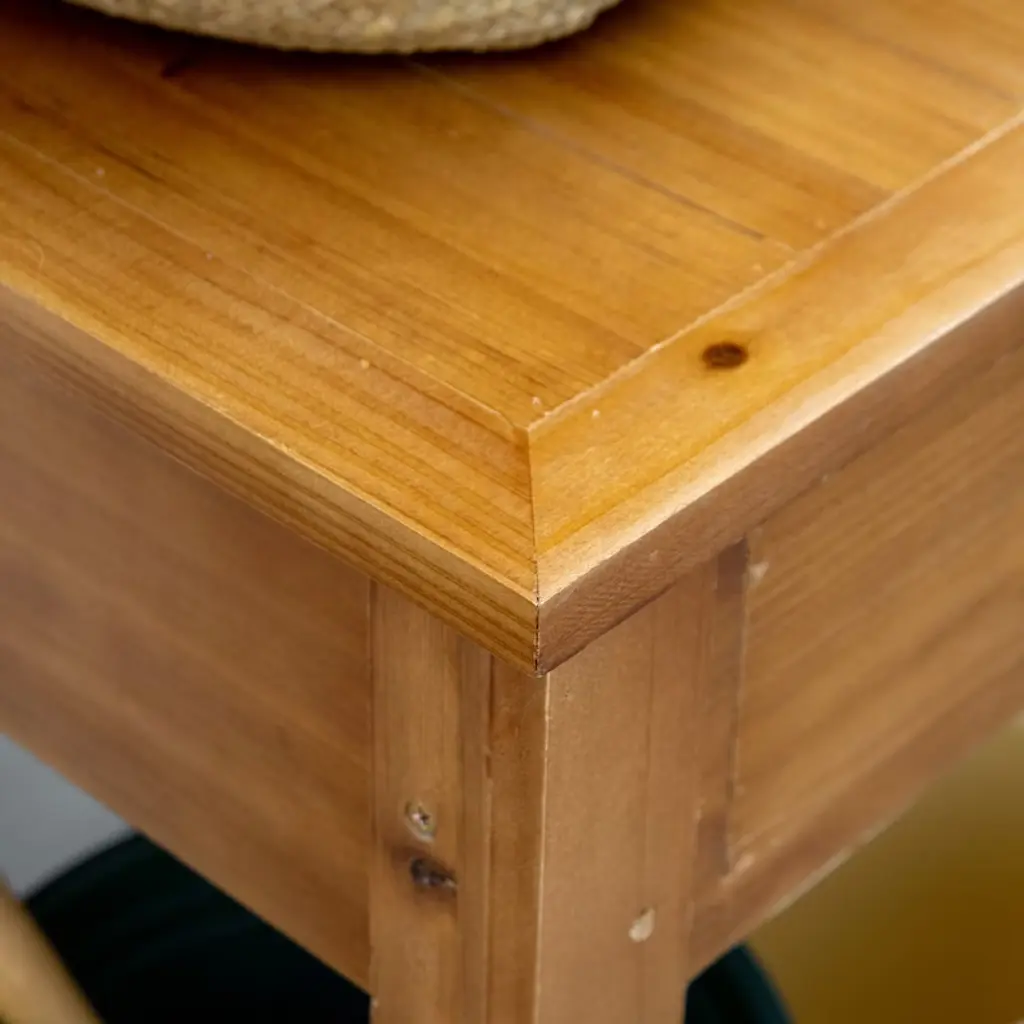 Solid Firwood Construction: Made of solid fir wood and sprayed with a waterproof paint, it supports a weight up to 110lbs. and withstands regular exposure to both moisture and sunlight. Multi Storage Solution: This potting bench has a drawer, and a bottom shelve, ideal for those who could use a bit of extra storage outside. Collect all your gardening tools, towels, sprayers, and plant containers in a place so the garden can get organized. Trellis Panel: This garden potting station can be useful and stylish. The backboard features a lattice mesh design that's wonderful for hanging plants, vines, or decorating with lights. Large Tabletop: Convenient to the pot, prune, root, transplant and weed your plants. This garden work table's lifted design helps save your back from the unnecessary strain caused by stooping down for ground planting. Outdoor Potters Bench Info: Overall Dimensions: 41.25" W x 16.5" D x 55.75" H. Weight Capacity: 110 lbs. (countertop), 11 lbs. (top shelf), 55 lbs. (bottom shelf).