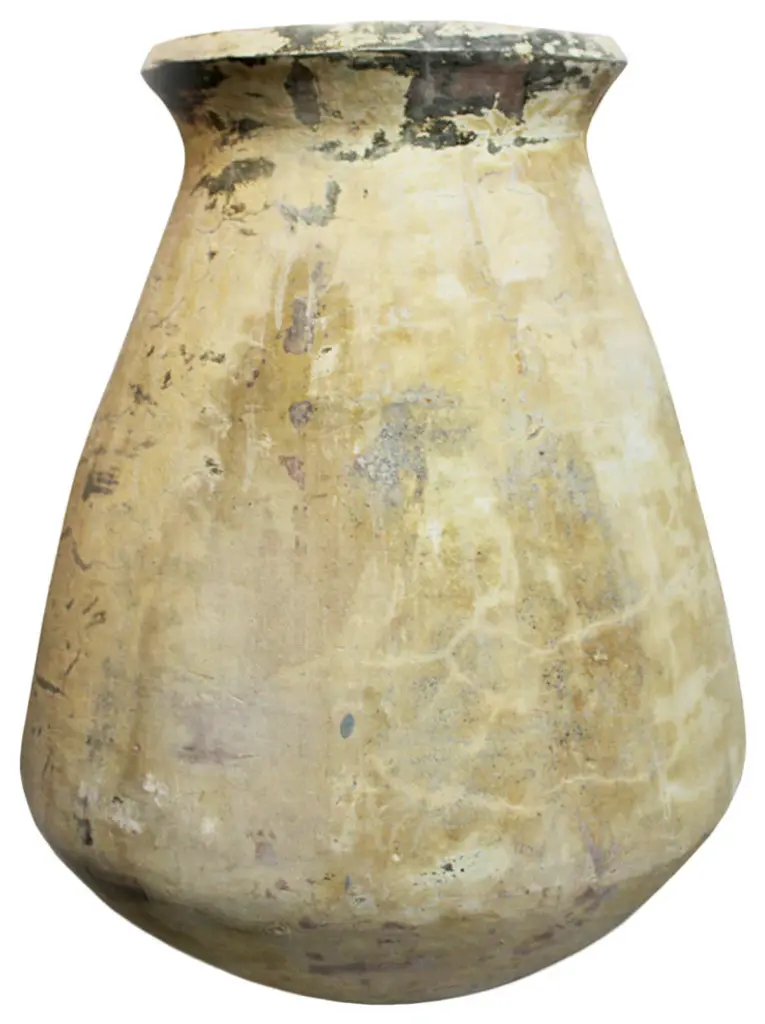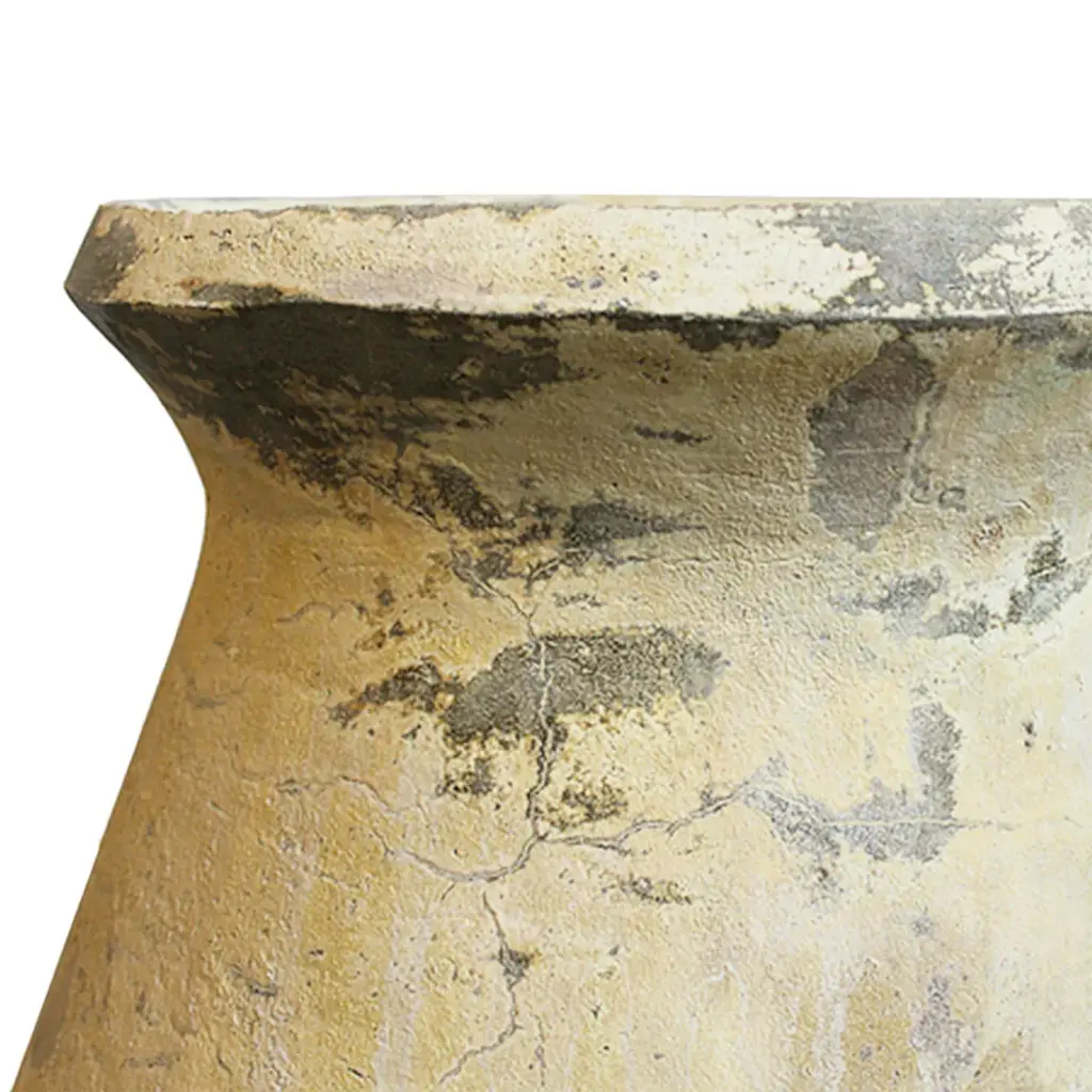 Beautiful handcrafted earthware clay pottery. Old world technique fired in underground kilns. Each piece with attractive unique faded yellow green matte surface with variations in texture patterns. For use indoors or used in the garden as planters, water features and focal points of interest. Inside top edge 14" diameter. Each unique and sold individually. This item is non-returnable - all sales are final.