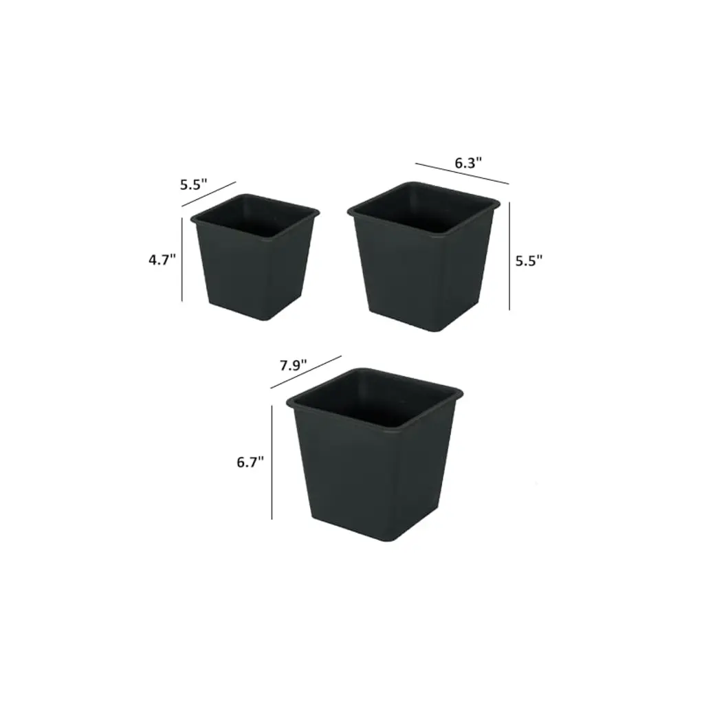 Naysaye 5Pcs Square Nursery Plant Pot, 7.9” Width Garden Pots With Drainage Hole, Black, 7.9“*7.9”*6.7“