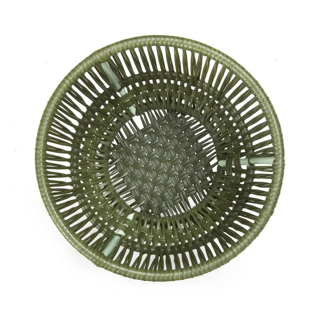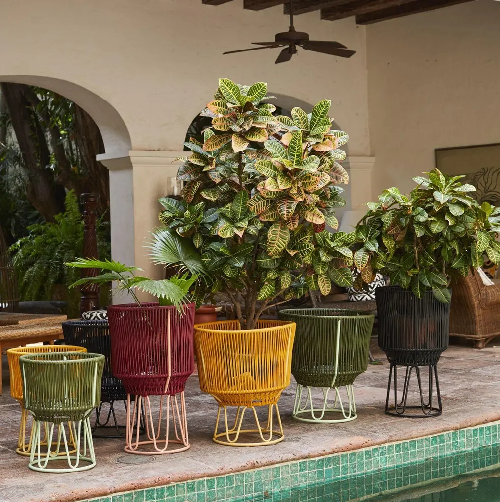 Olive Circo Flower pot 1 by Sebastian HerknerMaterials: Galvanized and powder-coated tubular steel. PVC strings.Technique: Made from recycled plastic. Weaved by local craftspeople in Colombia. Dimensions: Top diameter 36 x height 48 cm Base diameter 28.6 cm Available in colors: olive - menta, honey - sand, purple - carne, black matt - black.The Circo Flower Pot in joyful colors offers a vibrant home to your plants. A design by Sebastian Herkner, the comfortable and lightweight piece captures Colombia's vibrancy and spirit with its intense color contrast of fine webbing and steel frame. The pot comes in four color combinations and four different shapes.Each pot is made in Santa Marta, a city on the Caribbean coast of Colombia, by local craftspeople. They weave the PVC strings, which are made from recycled plastic, around a powder-coated tubular steel frame. The weaving technique the artesanos and artesanas use is called Momposino, a traditional method known for intricate patterns. Just the preparation of all the materials takes 20 days, while the production of each pot takes two days. German designer Sebastian Herkner is a long-term collaborator of Ames and has visited Colombia multiple times to experience the country’s cities, nature and people first hand. He also visited many of the ateliers that Ames has partnered with to learn about the unique traditional crafts of Colombia's regions. A sought-after contemporary designer and recipient of many industry awards, he has worked with many international design brands, creating intriguing pieces that showcase his intuition for interesting material, color, and texture combinations.