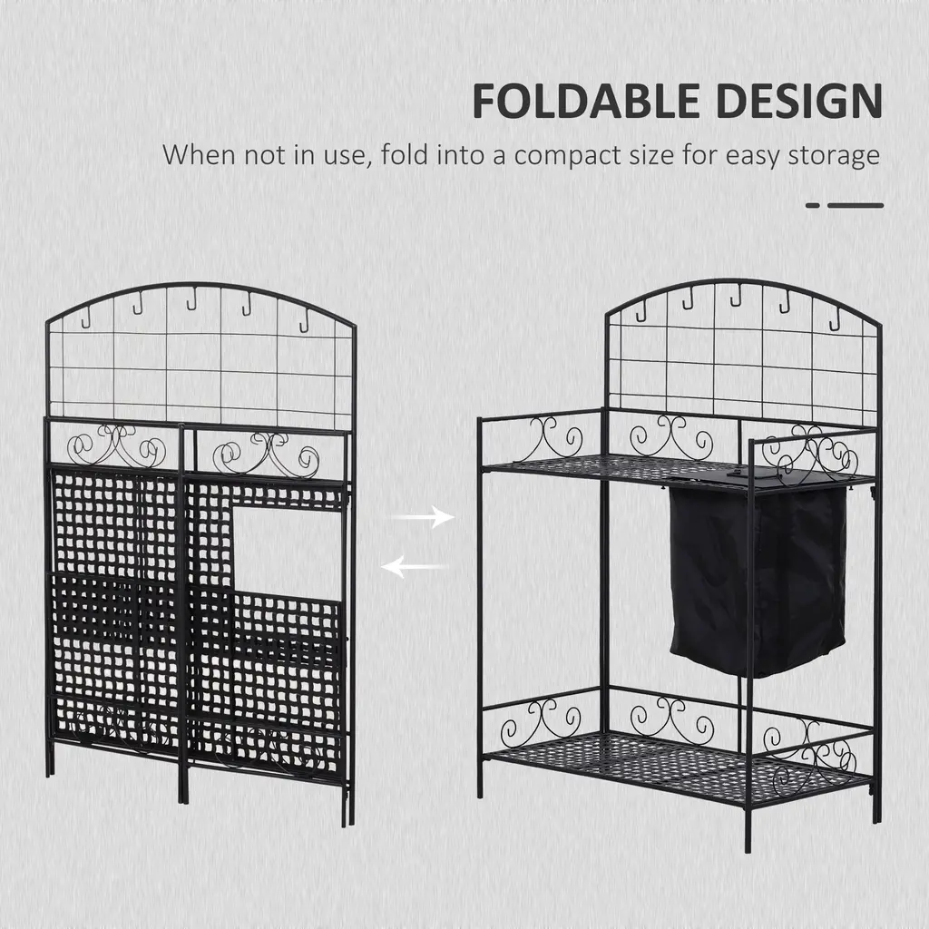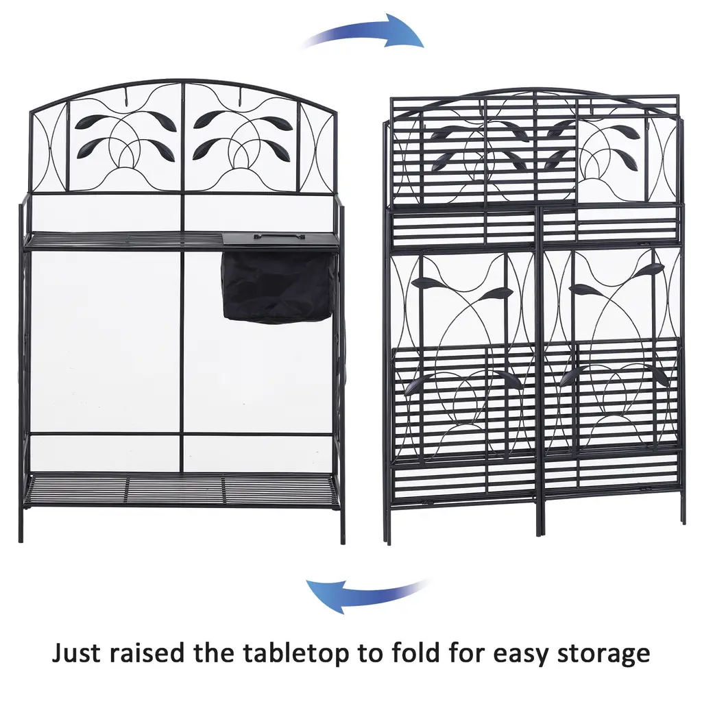 Outsunny Outdoor Folding Potting Bench With Storage & Spacious Workspace, Garden Table - Black
