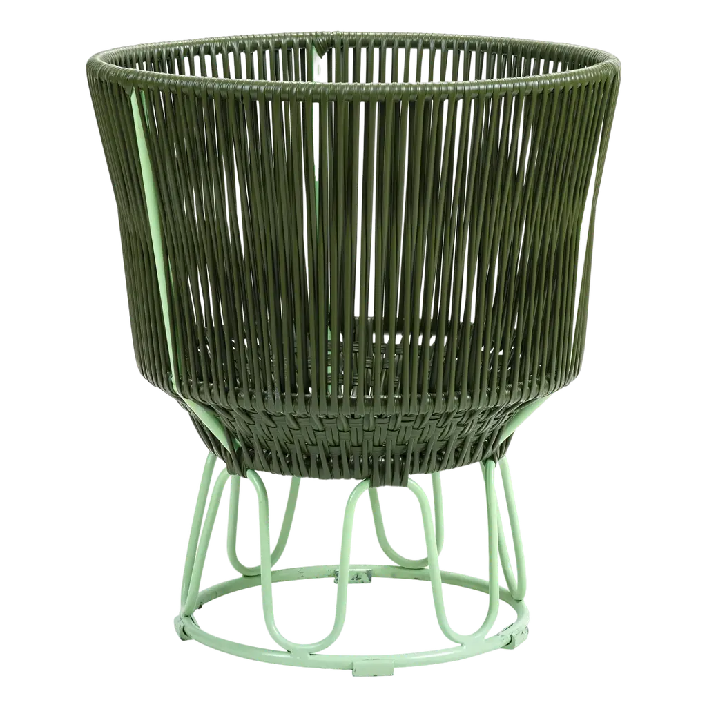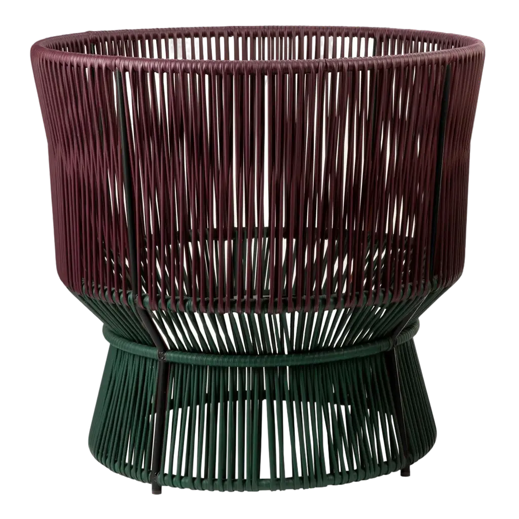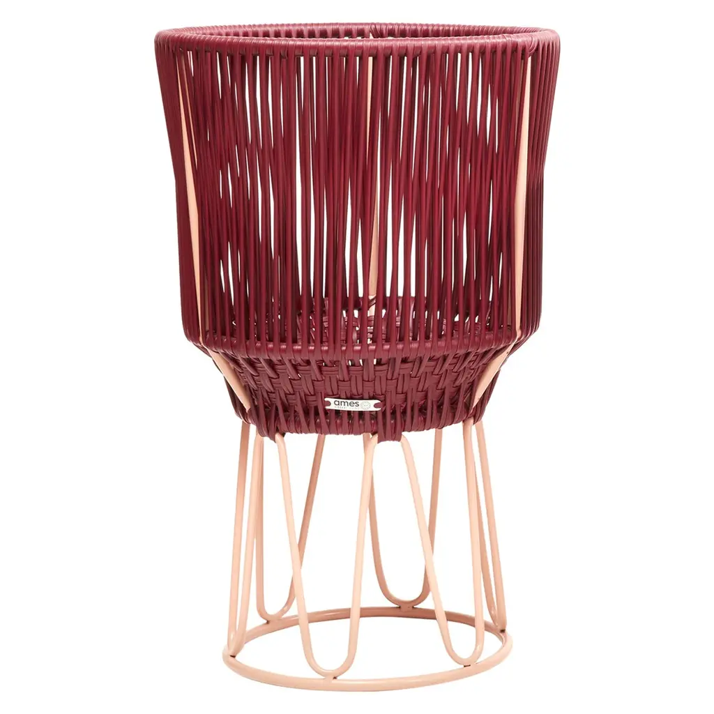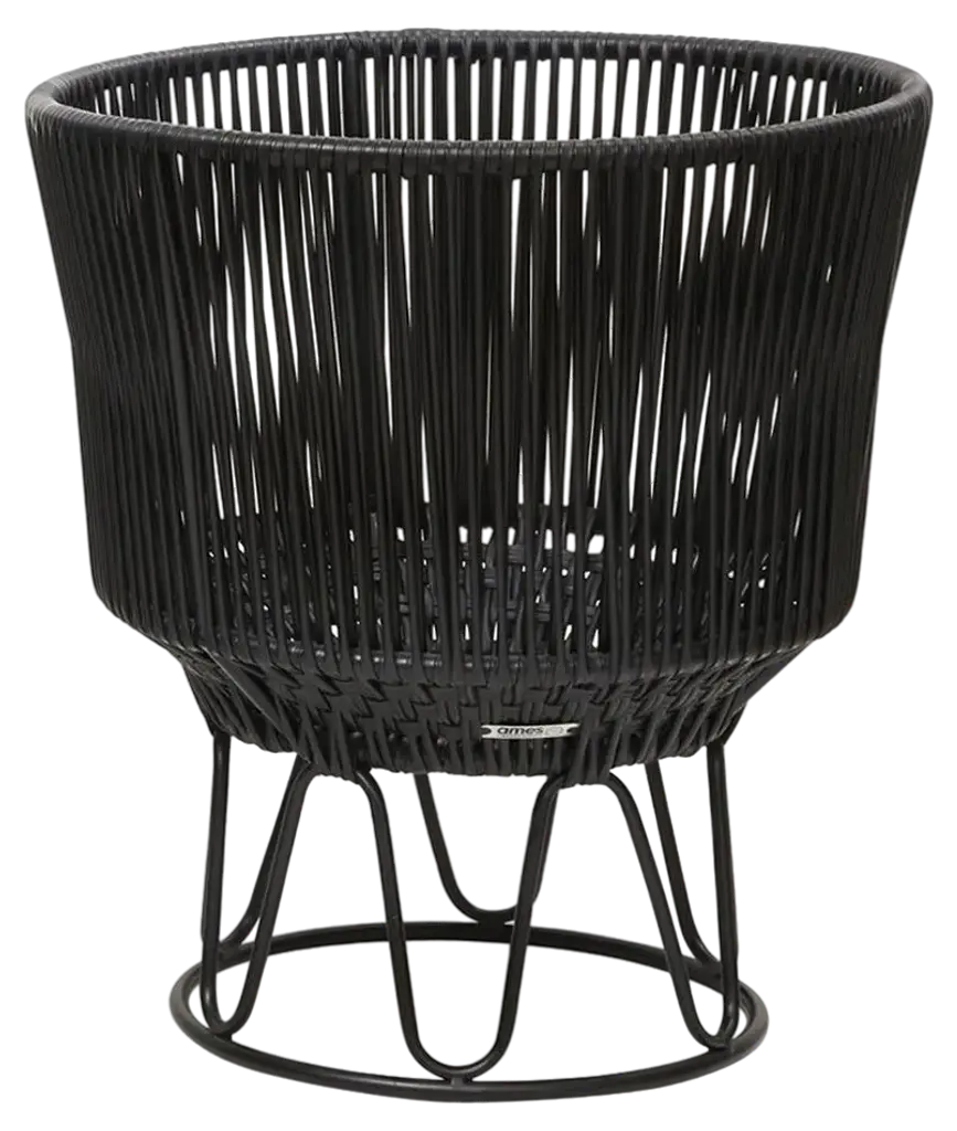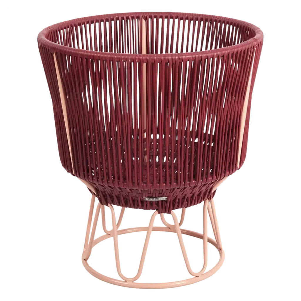 Purple Circo flower pot 3 by Sebastian HerknerMaterials: Galvanized and powder-coated tubular steel. PVC strings.Technique: Made from recycled plastic. Weaved by local craftspeople in Colombia. Dimensions: Top diameter 50 x height 56.5 cm Base diameter 34.7 cm Available in colors: olive - menta, honey - sand, purple - carne, black matt - black.The Circo Flower Pot in joyful colors offers a vibrant home to your plants. A design by Sebastian Herkner, the comfortable and lightweight piece captures Colombia's vibrancy and spirit with its intense color contrast of fine webbing and steel frame. The pot comes in four color combinations and four different shapes.Each pot is made in Santa Marta, a city on the Caribbean coast of Colombia, by local craftspeople. They weave the PVC strings, which are made from recycled plastic, around a powder-coated tubular steel frame. The weaving technique the artesanos and artesanas use is called Momposino, a traditional method known for intricate patterns. Just the preparation of all the materials takes 20 days, while the production of each pot takes two days. German designer Sebastian Herkner is a long-term collaborator of Ames and has visited Colombia multiple times to experience the country’s cities, nature and people first hand. He also visited many of the ateliers that Ames has partnered with to learn about the unique traditional crafts of Colombia's regions. A sought-after contemporary designer and recipient of many industry awards, he has worked with many international design brands, creating intriguing pieces that showcase his intuition for interesting material, color, and texture combinations.