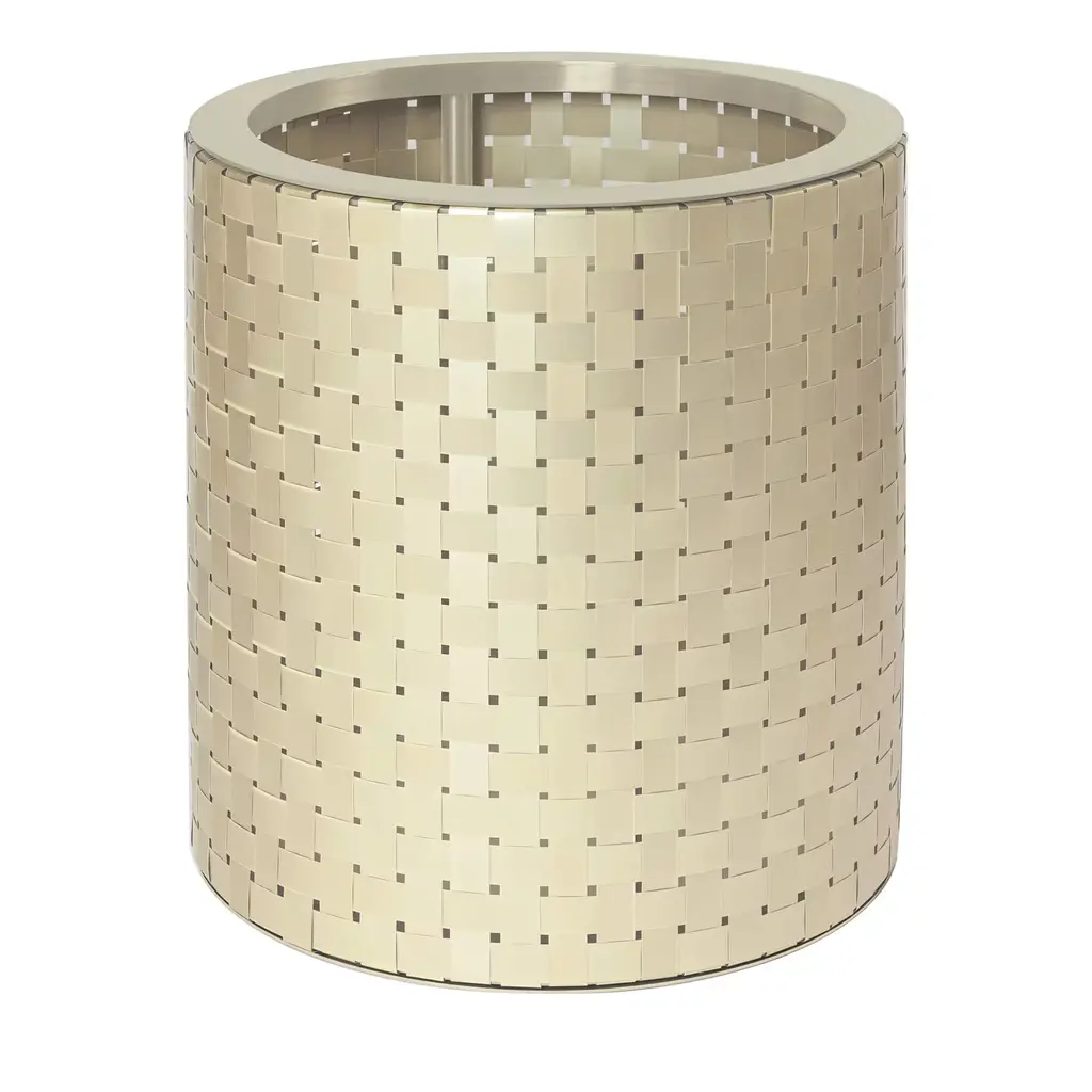 An iconic contemporary design of timeless value, this cachepot belongs to the exclusive Pontoinaere Collection inspired by the traditional Venetian lace, and by the sophisticated white shade of the Rialto bridge, crossing the Canal Grande of Venice. Deftly handmade with aluminum strips, it features a total white criss-crossed design. Customizable upon request, please consult the Concierge for further details.