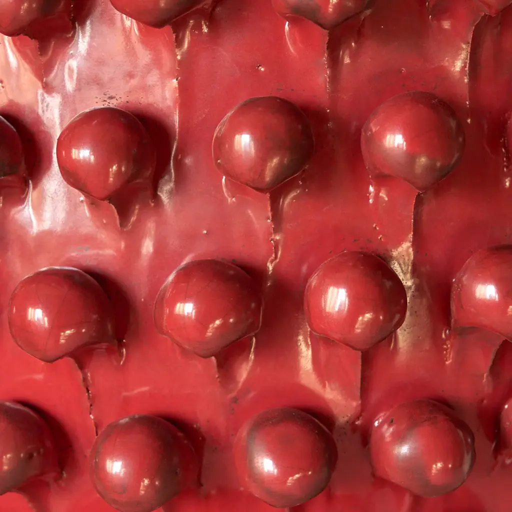 Meticulously crafted by expert hands, this marvelous cachepot is the perfect accent piece for a modern outdoor area. Made of ceramic, it features a textured surface textured with knots lacquered in a deep red shade. This precious design will make a unique and ideal gift to showcase in a garden.