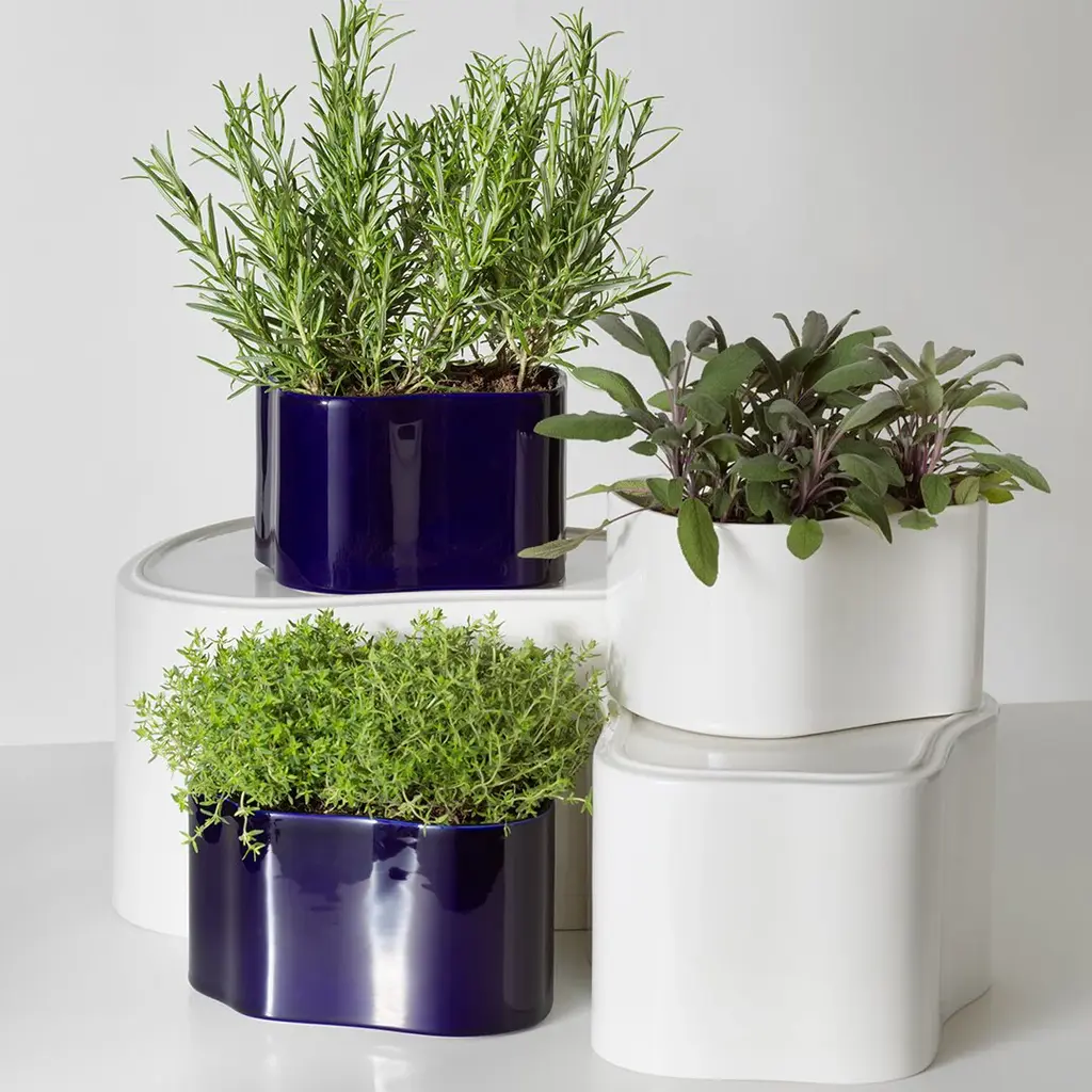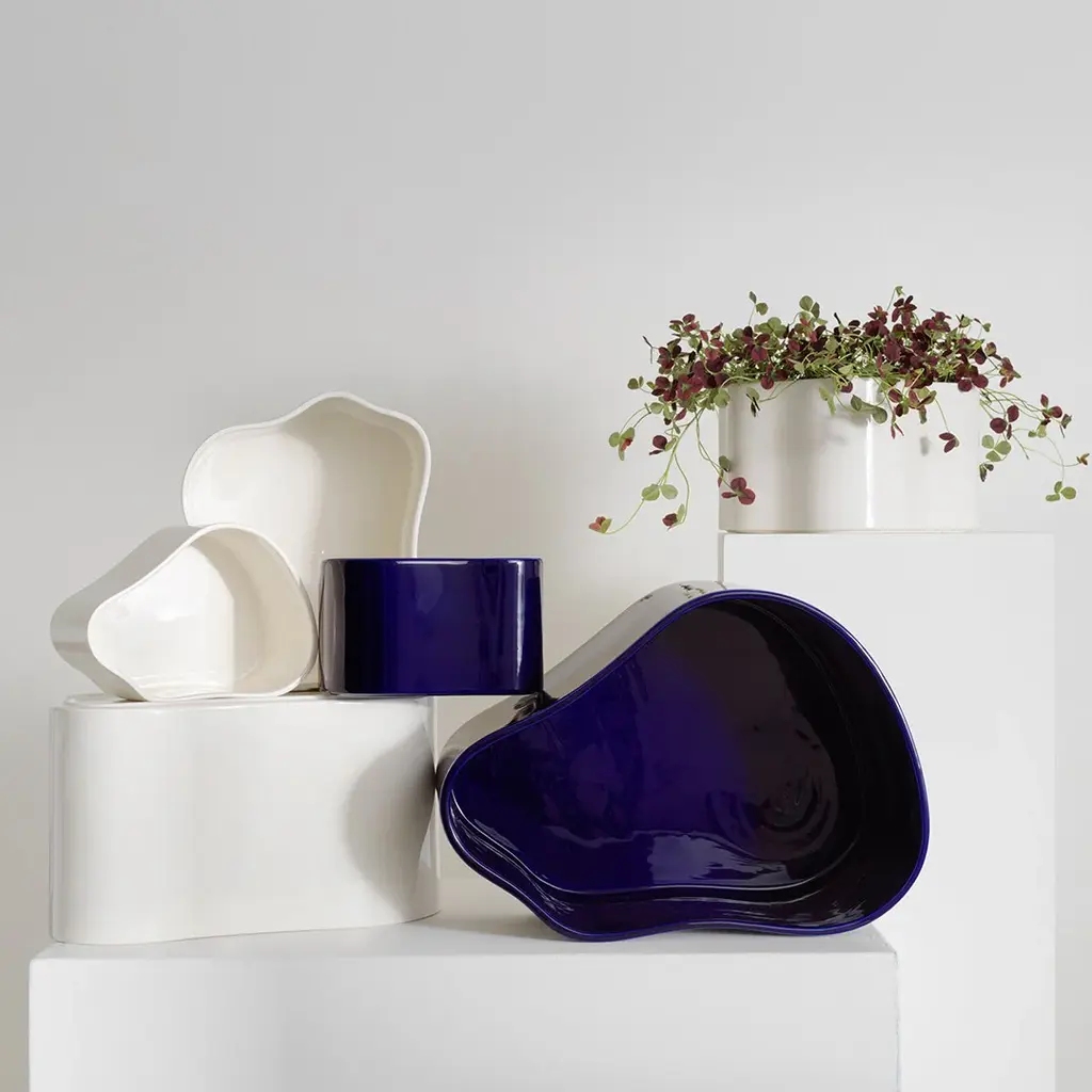 Crafted in ceramic, this plant pot displays a curved, organic shape without corners and was originally created by Aino Aalto for the terrace of the home she and Alvar built on Helsinki's Riihitie Road. Reinterpreted in three sizes for indoor use, the plant pot embodies the Aaltos' belief that even the smallest details are worthy of our time and attention. Although the plant pot featured in the Artek presentation at the Paris World Fair in 1937, it never went into serial production. The pot is handmade from ceramic, a material central to the Aalto's building vocabulary.