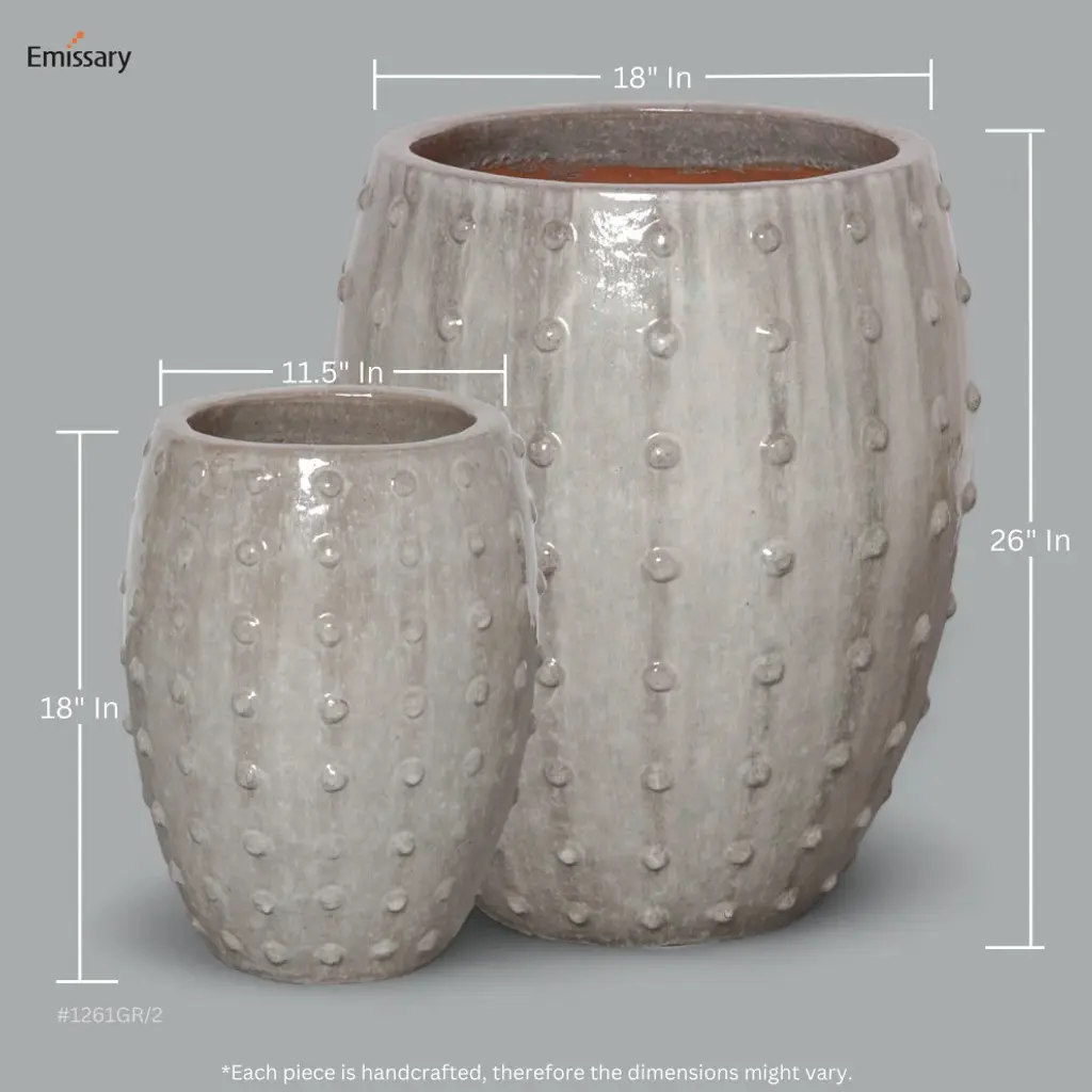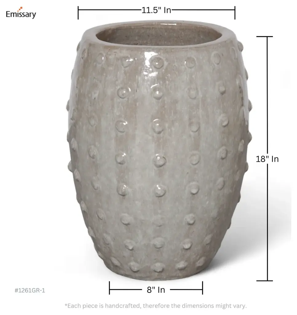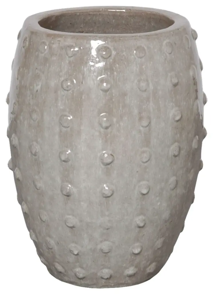This Studded Round planter is crafted of ceramic with a Gray glaze. Suitable for outdoor and indoor use. Adds color and texture to your home or garden.