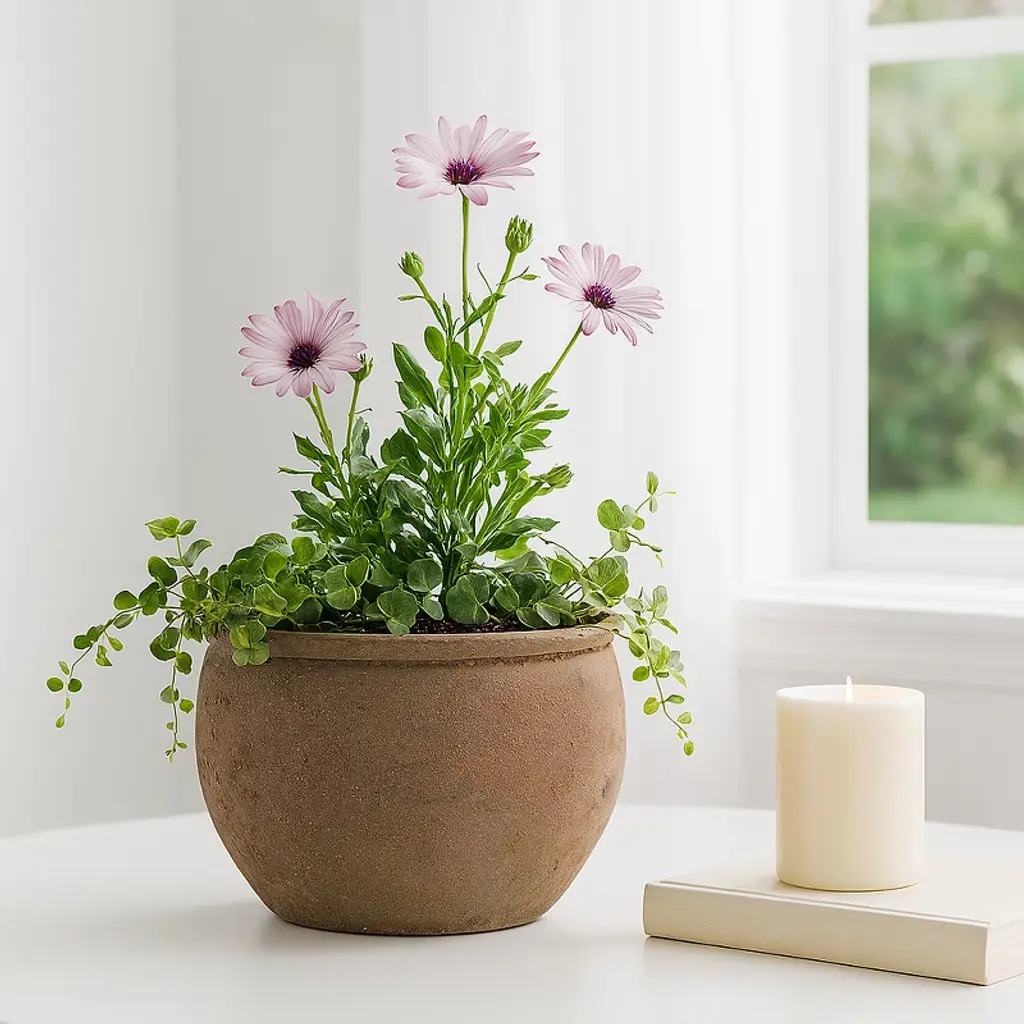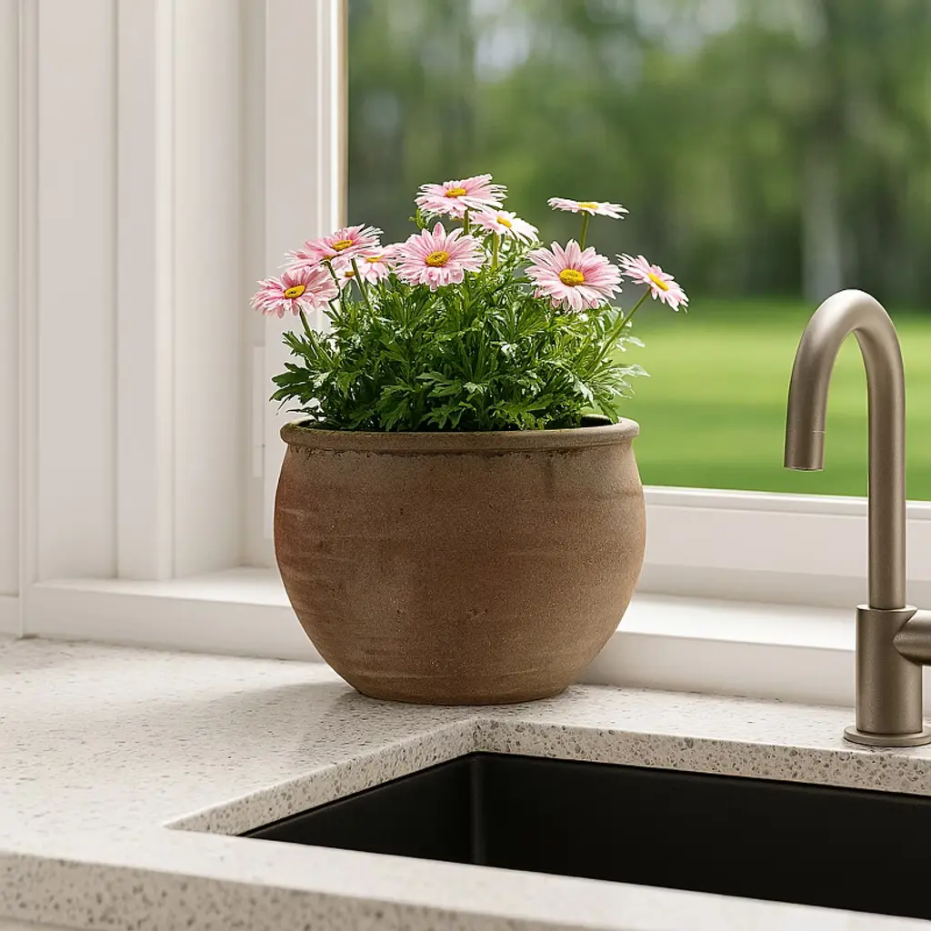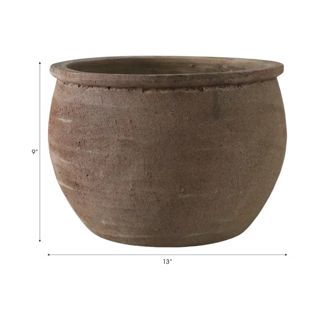 Rooted in timeless appeal, this beautifully rounded planter brings warmth and texture to your home with its earthy finish and artisan-inspired silhouette. Designed to elevate the natural beauty of your plants, it offers generous space and a neutral, tactile surface that highlights everything from delicate orchid pots to compact nursery pots or sculptural terracotta pots. The form is simple yet refined, allowing it to complement both contemporary and traditional interiors while adding organic character to every room. Whether you're filling it with flowering stems, bold greens, or low-maintenance succulent planters, this piece provides the depth and versatility to support a wide variety of arrangements with style and ease. It functions just as beautifully as a standalone statement in house decor as it does layered into patio decor or softening the edges of a minimalist office setup. Its curved profile makes it a natural fit for design-forward spaces that prioritize both beauty and practicality, and its stability ensures your plants stay well-supported through seasons of growth. This planter also serves as a sophisticated base for herb gardens, bonsai trees, or indoor plant pots, offering endless flexibility for those who love to curate and rearrange their space. The finish has a natural, organic look that pairs effortlessly with wood tones, stone textures, or clean modern surfaces, making it easy to style in almost any room. Whether perched on a sunlit windowsill, anchoring a console table, or placed beside your favorite chair, it invites a calm and grounded energy into your home. More than just a container, this is a thoughtful addition to your collection of plant accessories, built to offer lasting style and function in equal measure. Ideal for those who appreciate subtle design and quiet luxury, it makes a beautiful gift or personal upgrade that turns greenery into an intentional part of your decor story.