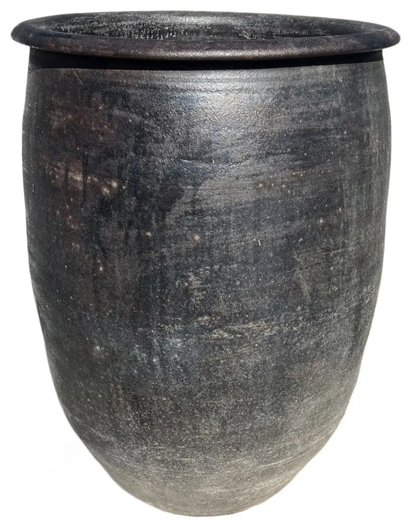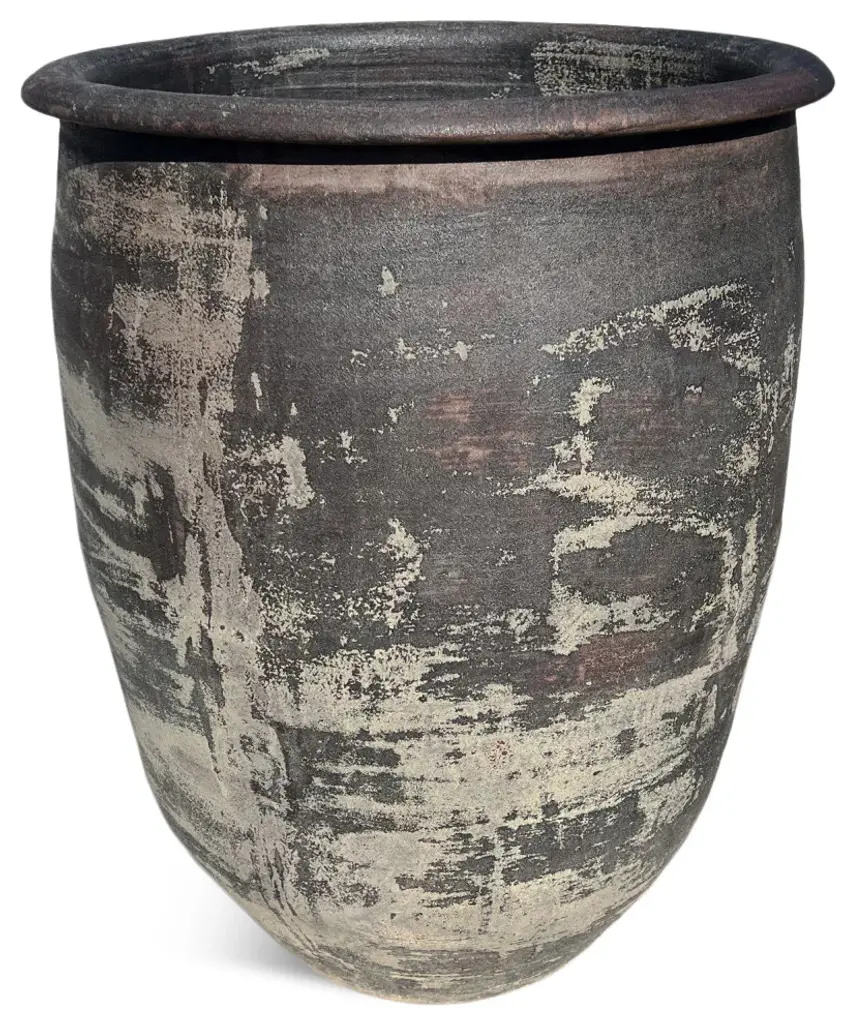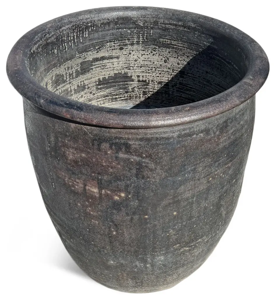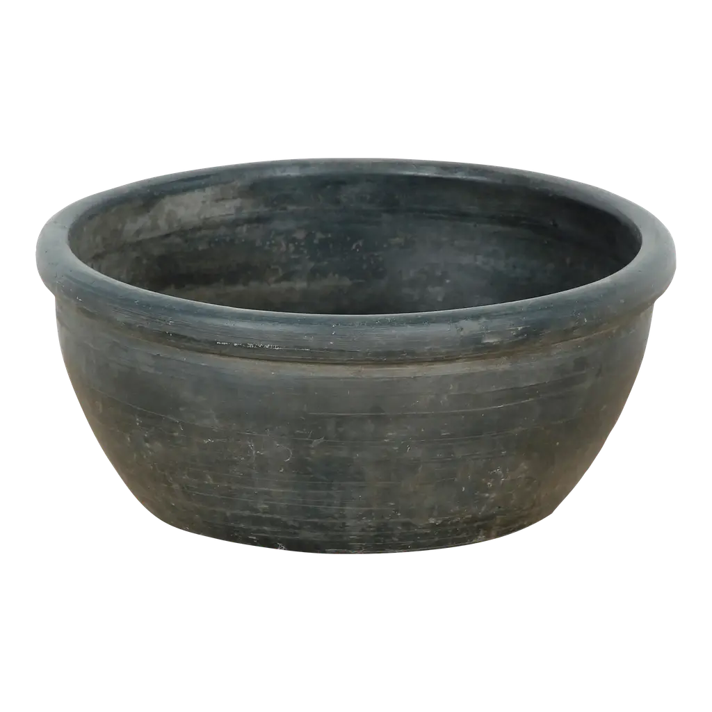 Beautiful handcrafted earthware clay pottery. Old world technique fired in underground kilns. Each piece with attractive unique faded black charcoal surface with variations in texture patterns. For use indoors or used in the garden as planters, water features and focal points of interest.