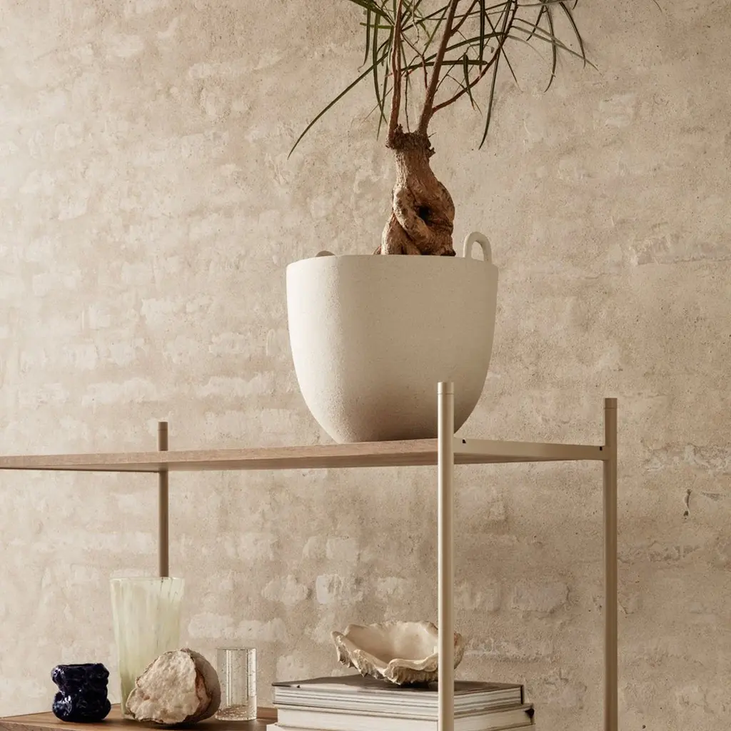 Made with a distinct sort of stoneware with a grainy, raw texture, the Speckle line presents an organic, handmade look and feel. With its fluid silhouette, the pot with two handles mirrors nature's irregularities, though with the elegant addition of the high-gloss finish. The Speckle Pots forms a sweet home for small plants, but you may also want to use it for storage of smaller items on a shelf or as a decoration on your dinner table.