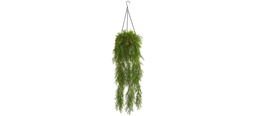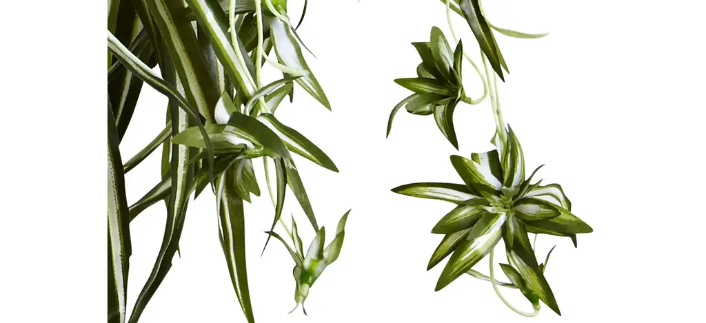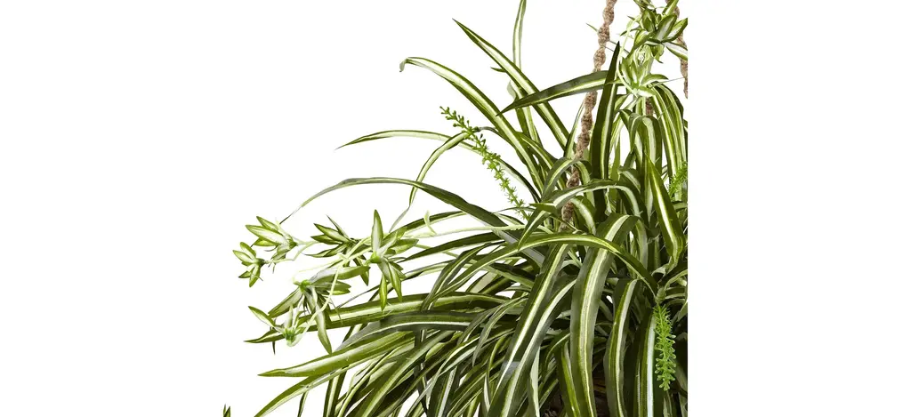 Hang the Spider Plant Hanging Basket up high and let its leaves flow down naturally. Lengthy, narrow leaves whimsically cascade down giving the plant a spider-like look. Green and variegated blades bring a flourishing display to a kitchen or enclosed porch.