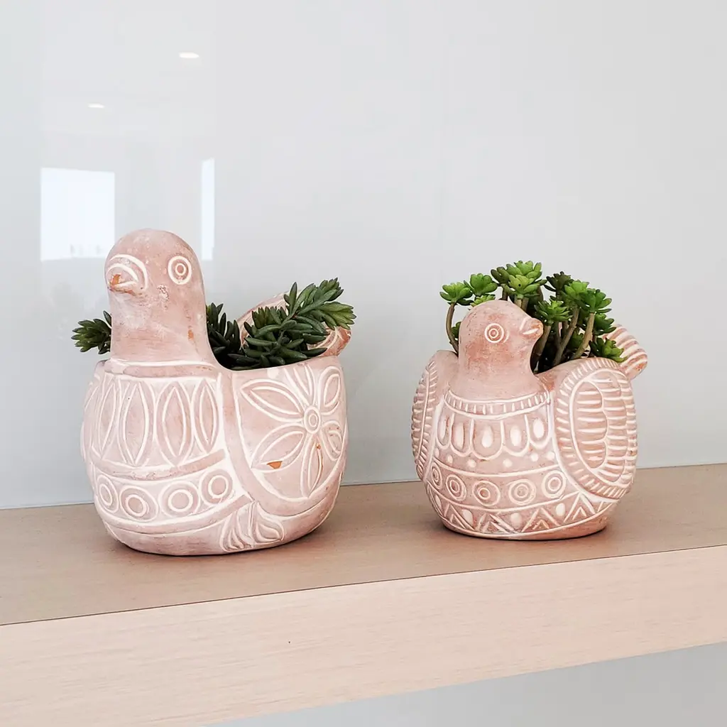 This playful pottery in the shape of animals will make your garden planters unique and functional. Each piece is molded into fun shapes that can be filled with lots of colorful flowers or green plant materials.Each product is designed and curated by Korissa, sustainably handmade by Fair Trade artisans in Bangladesh.