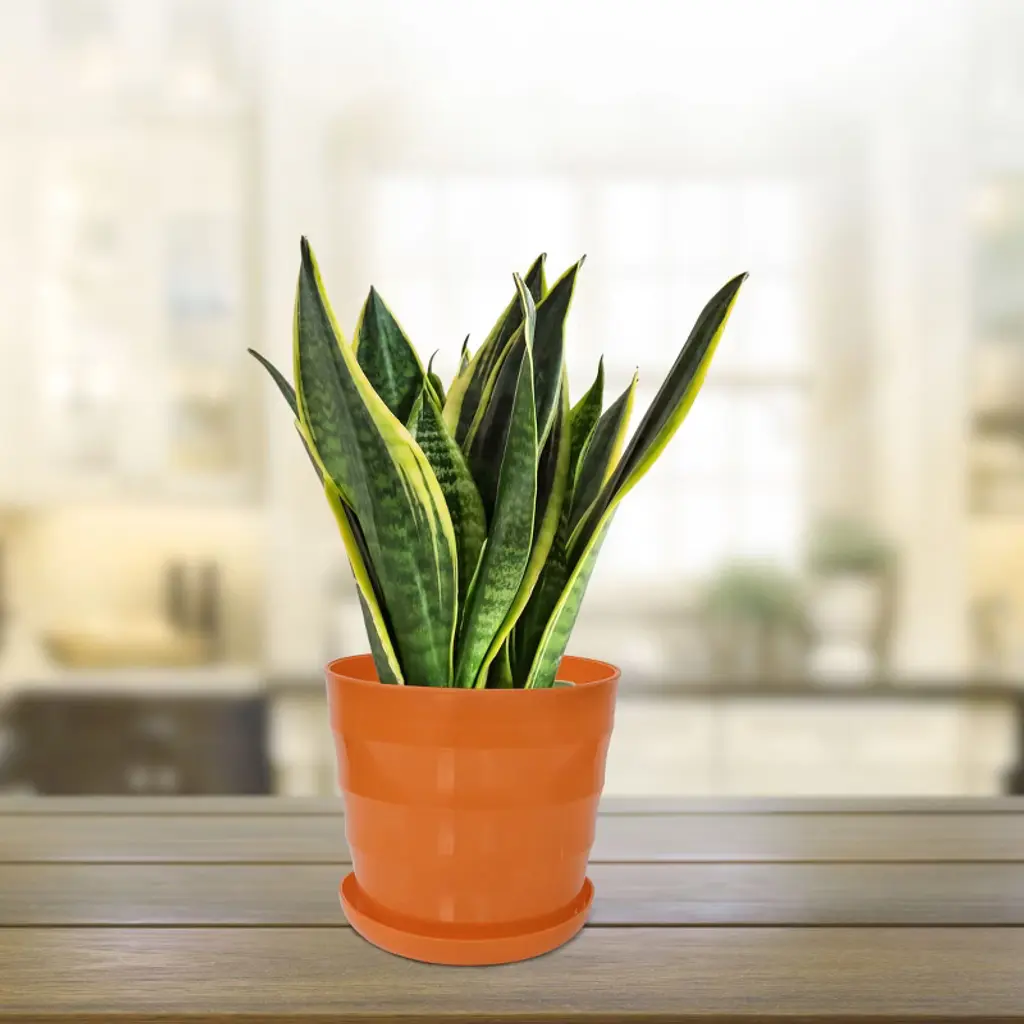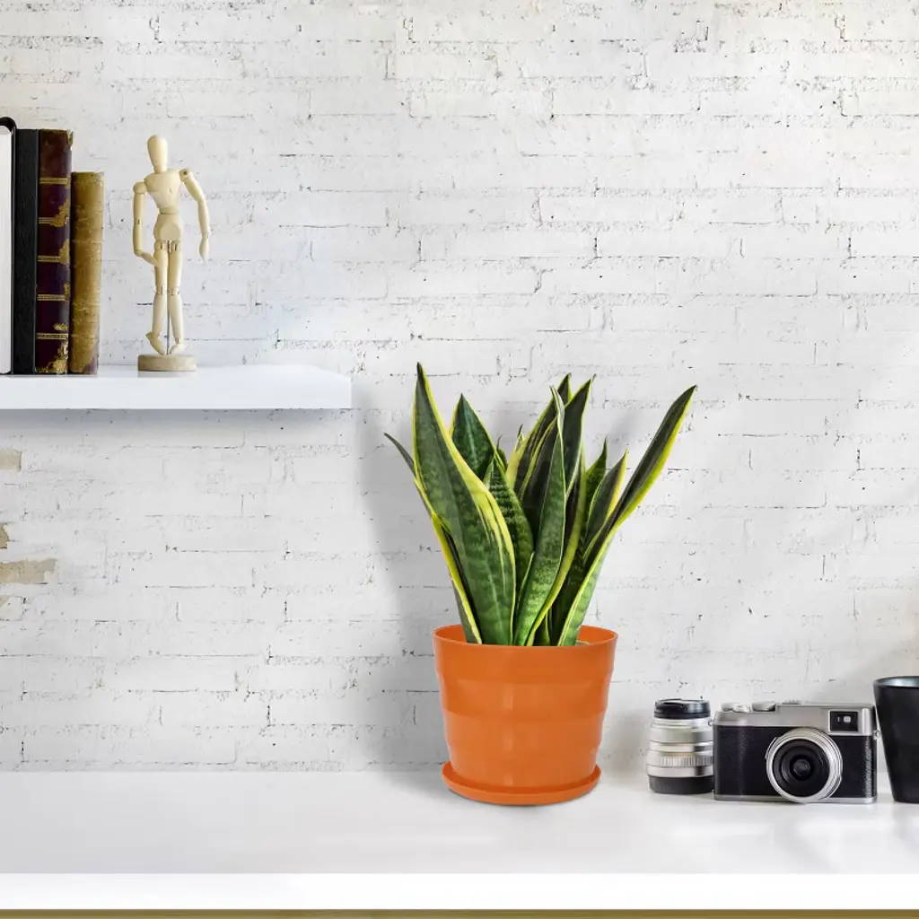 Unique Bargains Home Garden Office Round Shape Plastic Flower Pot Orange