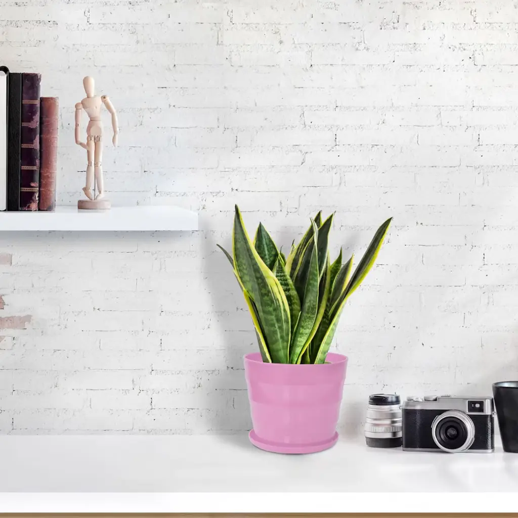 Unique Bargains Home Garden Office Round Shape Plastic Flower Pot Pink