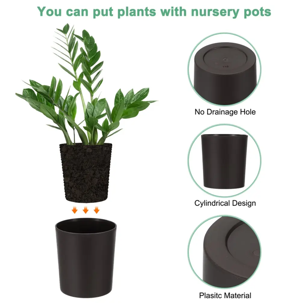 This plastic flower pot is ideal for a variety of plants, including potted plants and succulents. It is versatile and can be used in different settings such as homes, balconies, gardens, and both indoor and outdoor spaces. The pot is crafted from lightweight plastic, making it easy to handle, while its modern design adds a touch of elegance to any environment. The cylindrical shape allows for even spacing of plants, and it can be used individually or as part of a planter set. Note that the pot does not come with drainage holes, but they can be added if necessary. Ensure the pot size meets your needs before purchasing.