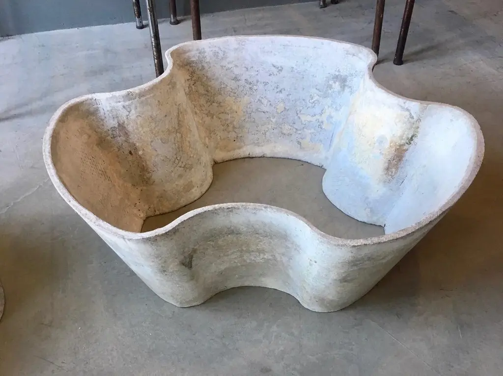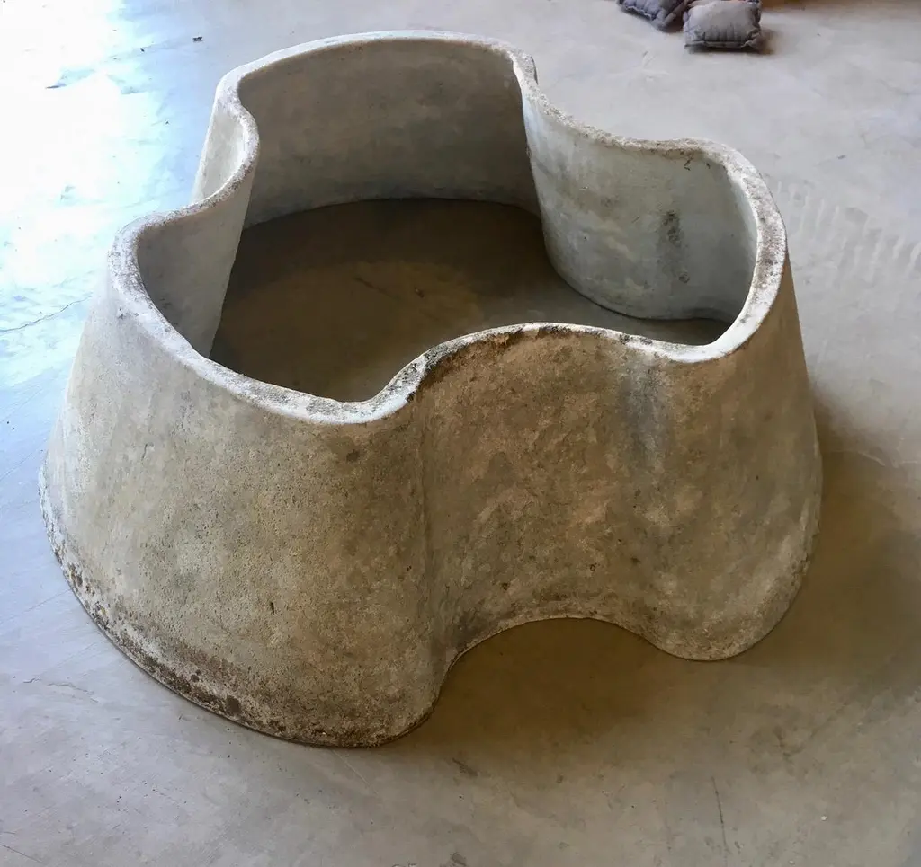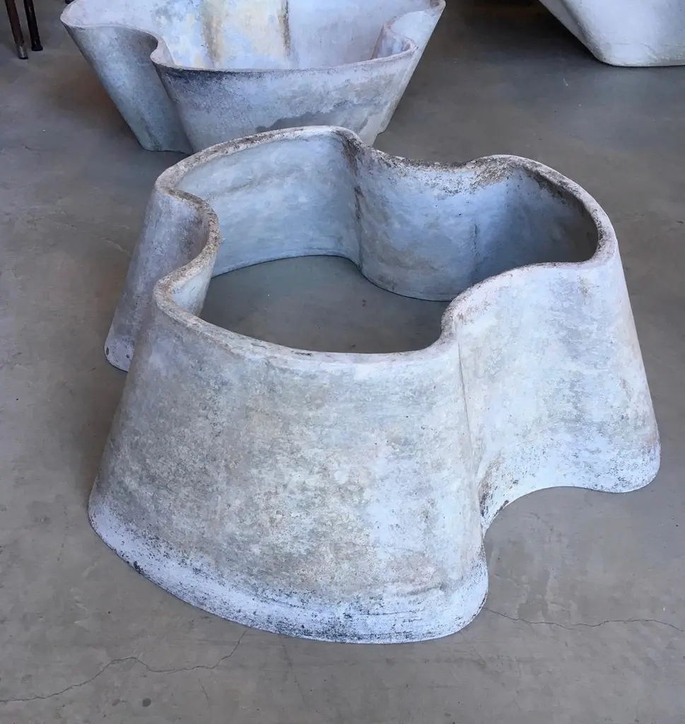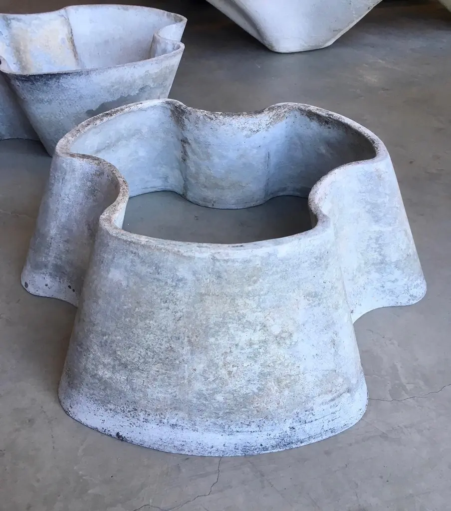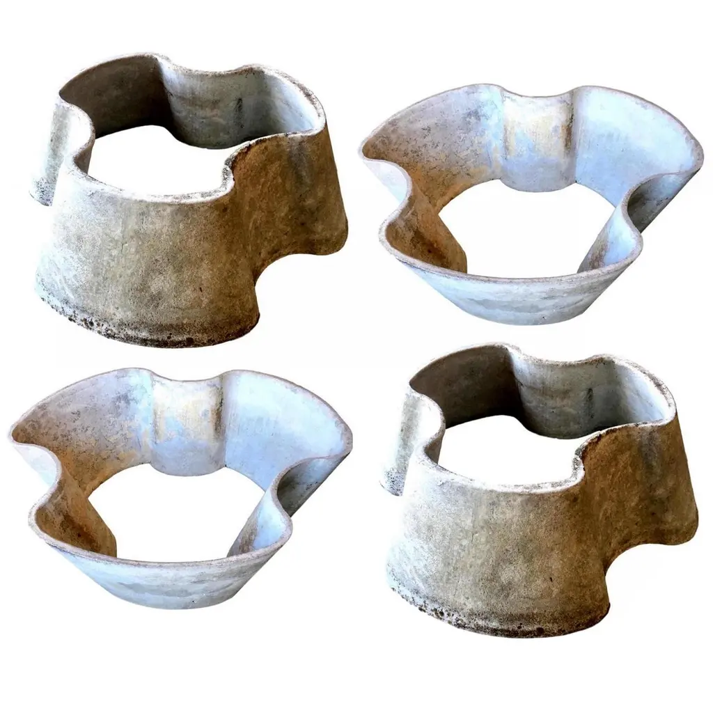 Very rare set of Willy Guhl sculptural flower planters made of cement. Great sculptural objects. Hollow and open on both ends. Perfect for placing in soil and arranging plants/flowers inside. Excellent vintage condition with different patinas. 3 still available. Priced individually.
