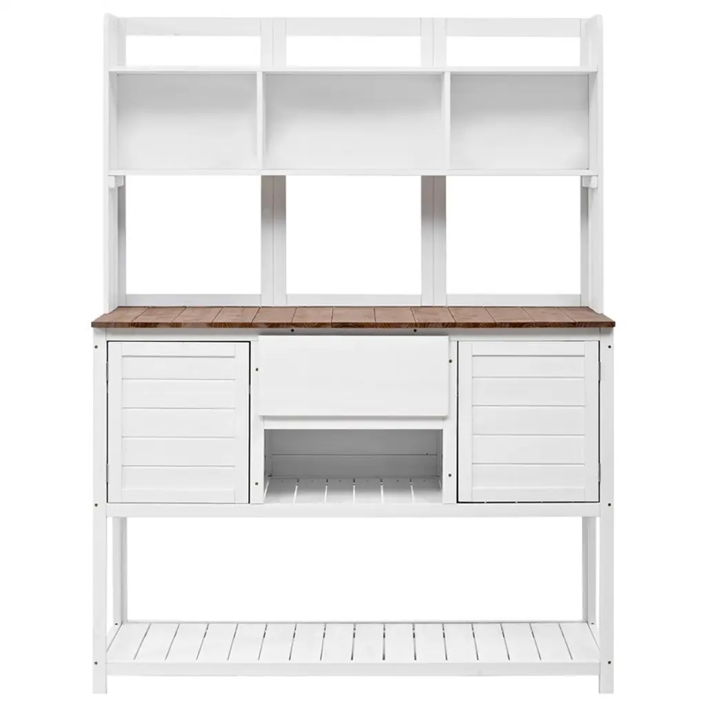 Wooden Potting Bench Table With Adjustable Shelves, Garden Workstation Outdoor Work Table With Hutch And Storage Drawer - White