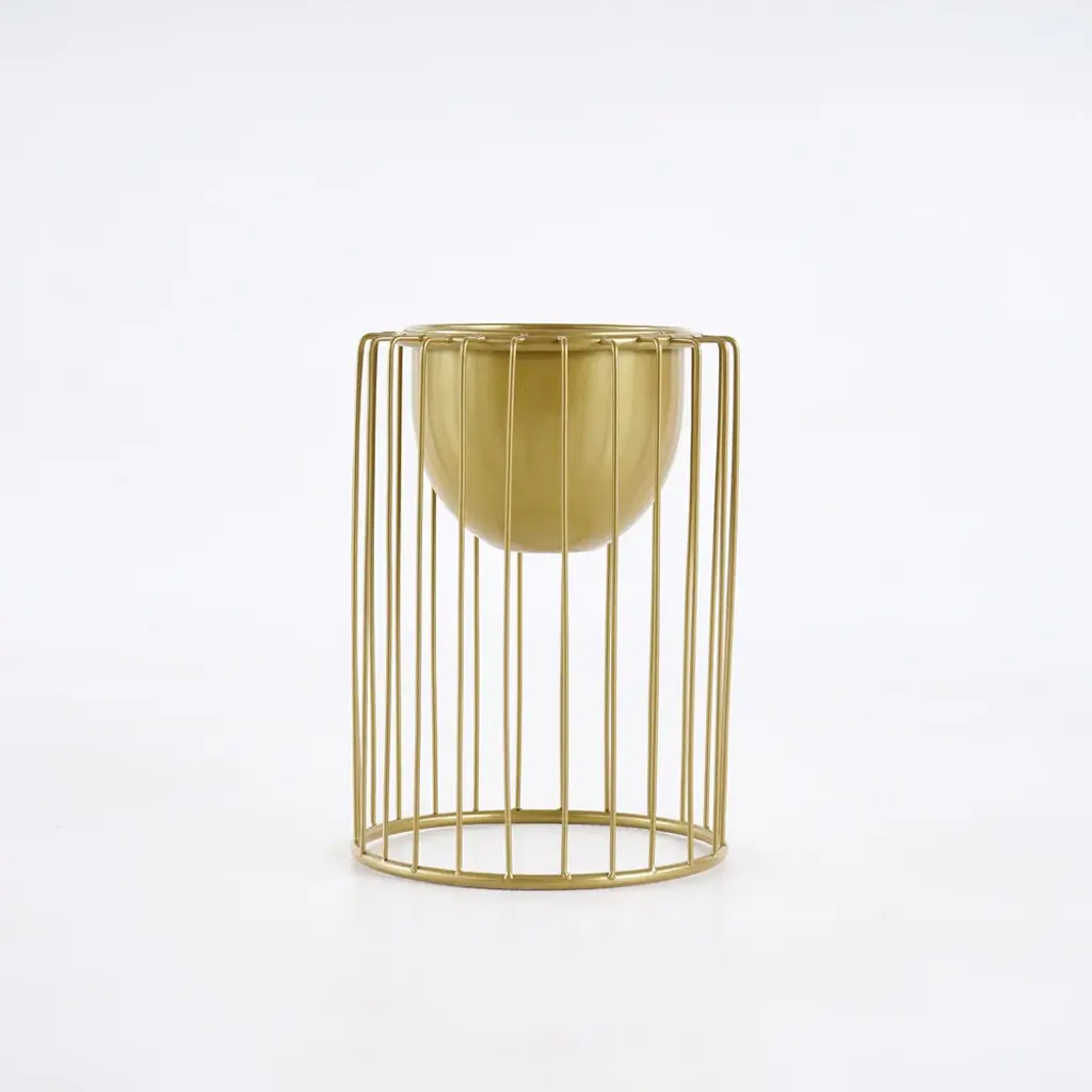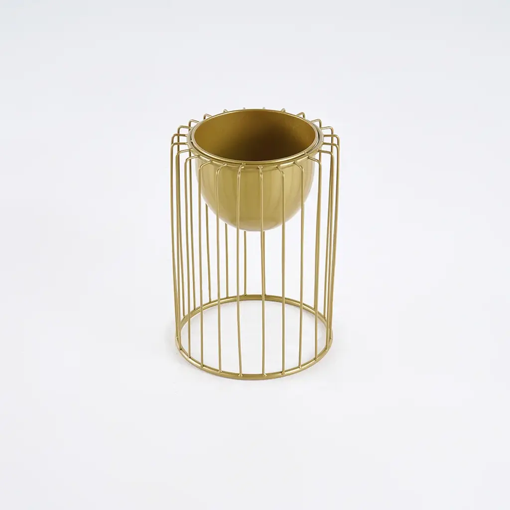 Create a contemporary indoor botanical display with this plant stand! Crafted of metal in a gold finish, each stand features an open rectangular frame and an inverted dome plant bowl. The metal construction ensures the steady support and yet beautiful look. All in all, it is excellent for holding your decorations to the stand. Just add this as a centerpiece to any living space and take in all of the compliments you'll get!