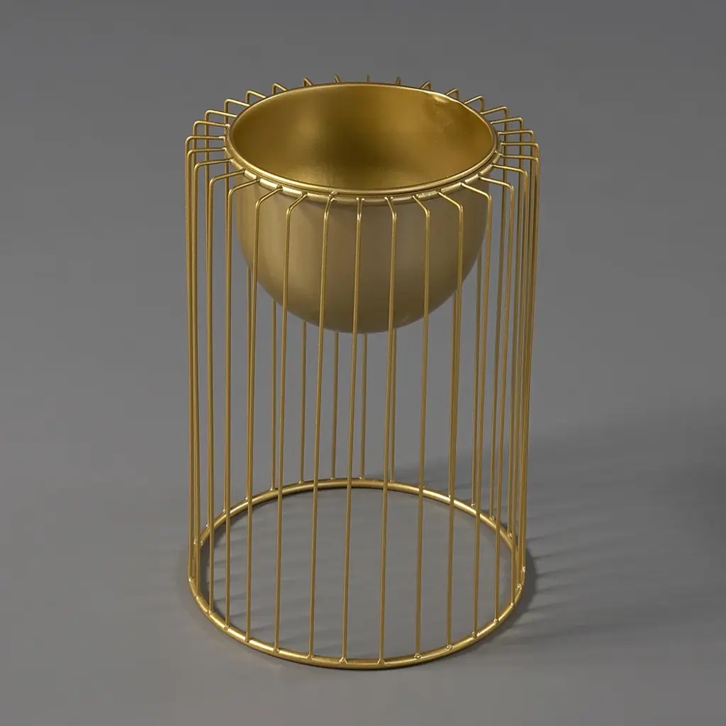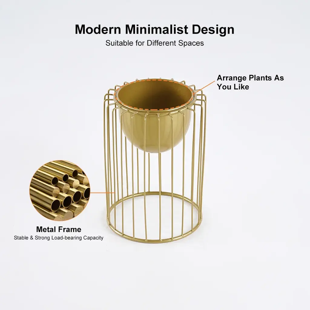 Create a contemporary indoor botanical display with this plant stand! Crafted of metal in a gold finish, each stand features an open rectangular frame and an inverted dome plant bowl. The metal construction ensures the steady support and yet beautiful look. All in all, it is excellent for holding your decorations to the stand. Just add this as a centerpiece to any living space and take in all of the compliments you'll get!