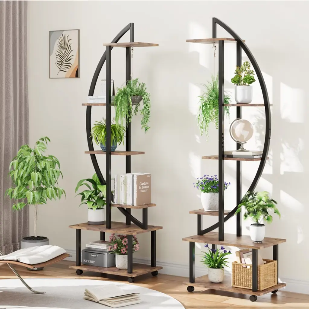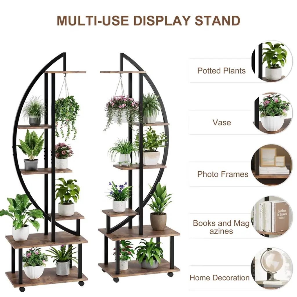 2 Pack 6 Tier Tall Plant Stand Metal Indoor Plant Stand With Detachable Wheels Half Moon Shape Plant Stands With Drawers Large Plant Display Stand for Home Patio Lawn Garden Balcony